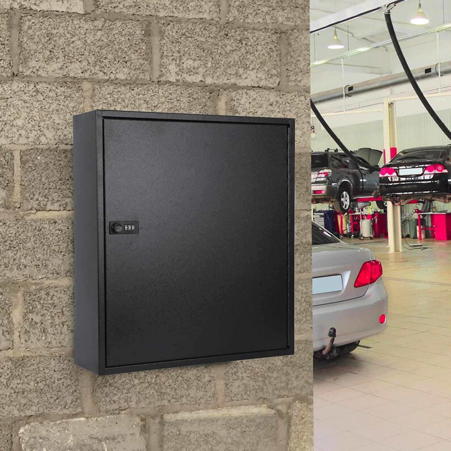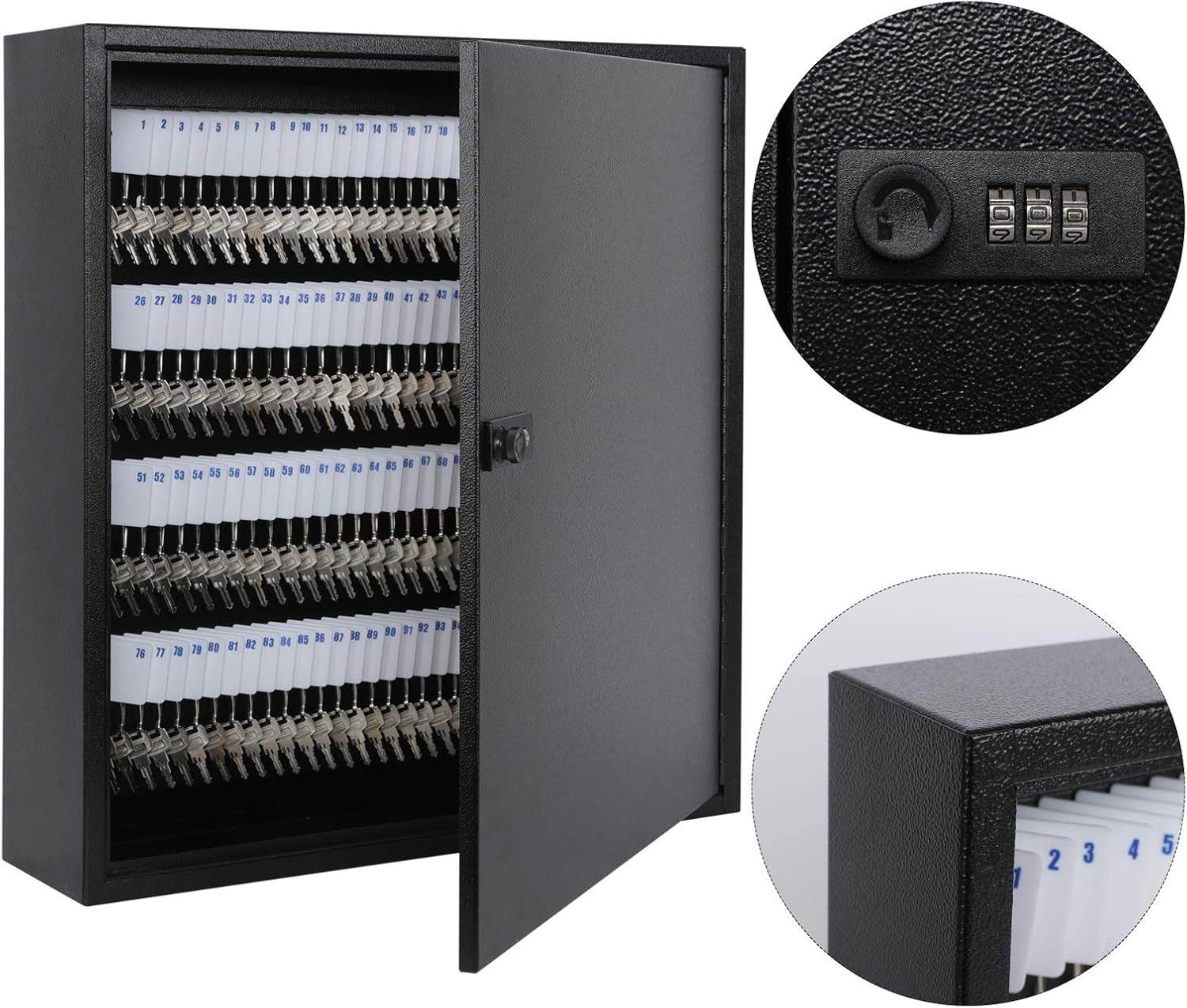 KYODOLED Key Cabinet Lock Box with Code, Wall Mount Key Storage Box with Combination Lock, Hooks & Labels, (Black, 200 Key)