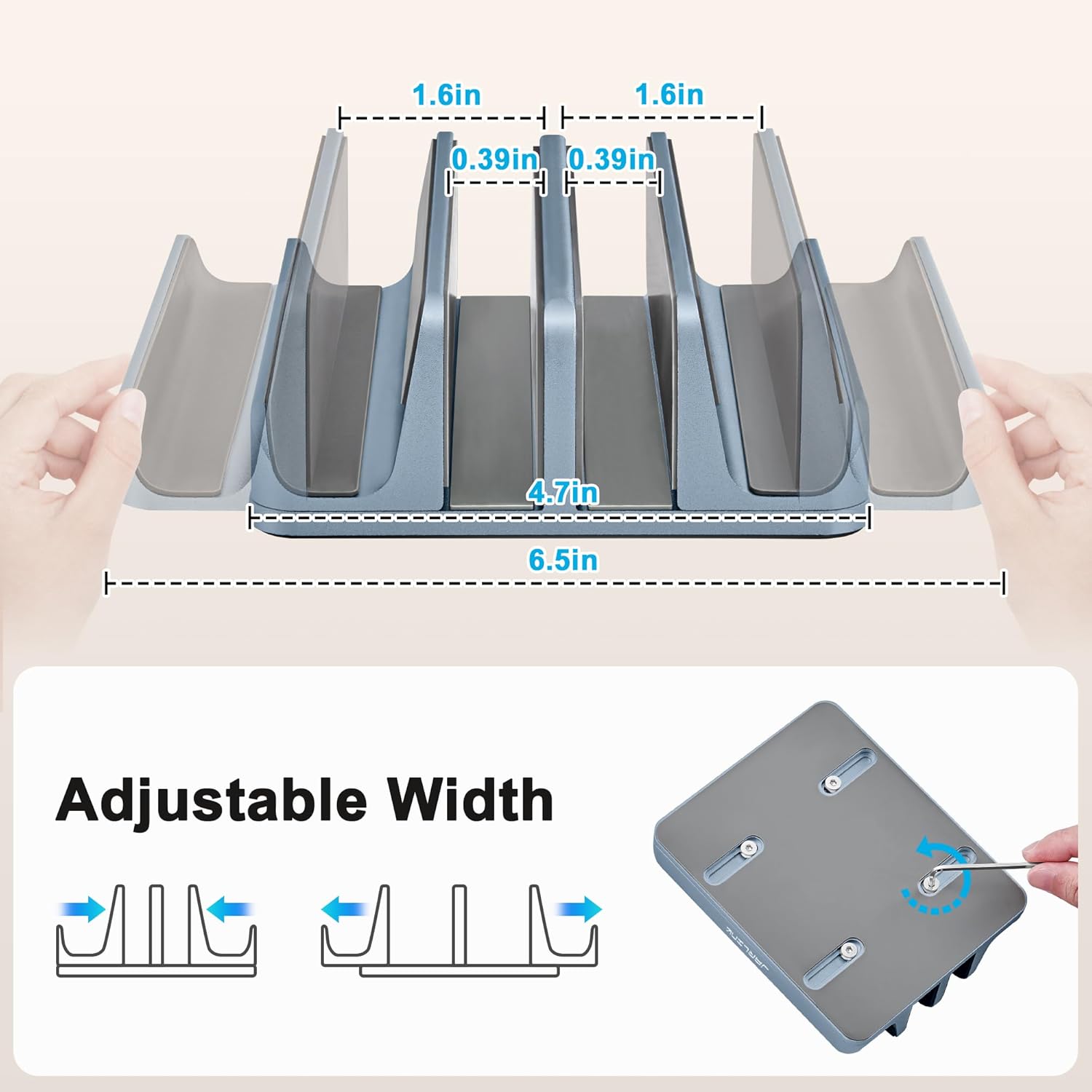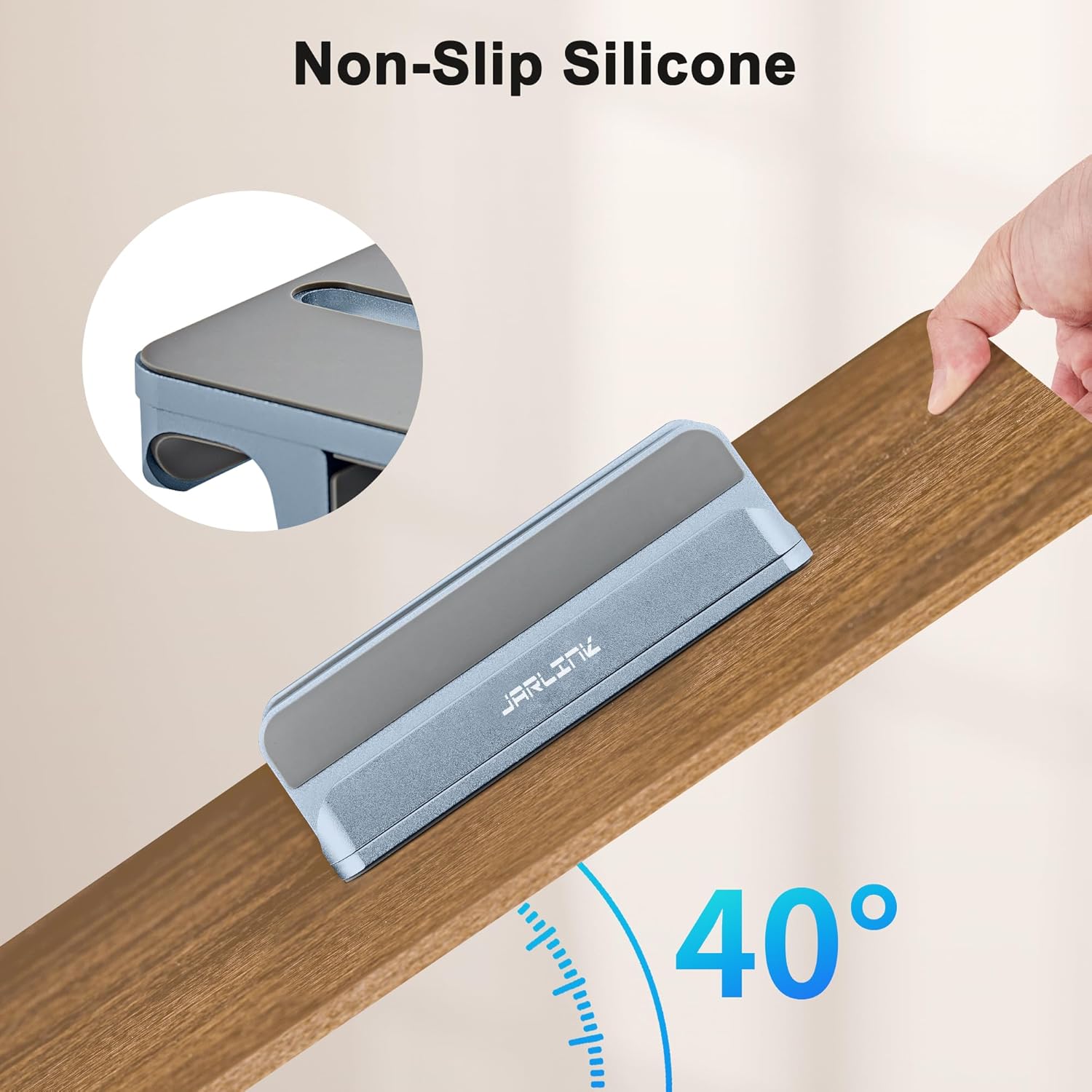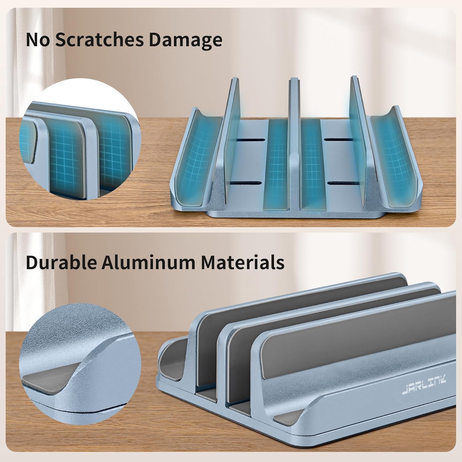 JARLINK 4-in-1 Adjustable Vertical Laptop Stand Holder, Aluminum Dual Slots Laptop Rack for Desk, Space-Saving Organizer Compatible with All MacBook, Surface, Chromebook, and Gaming Laptops (Grey)