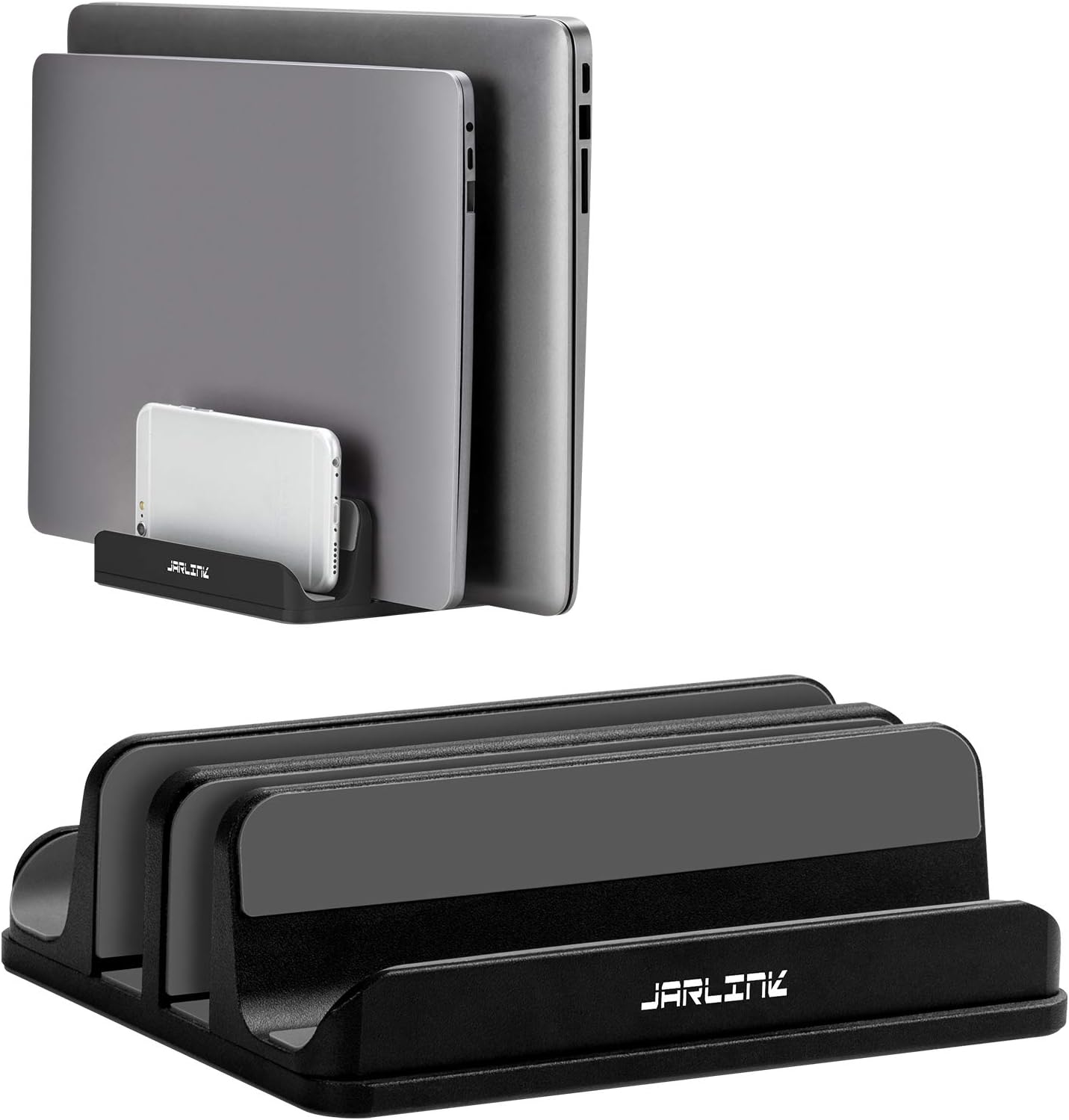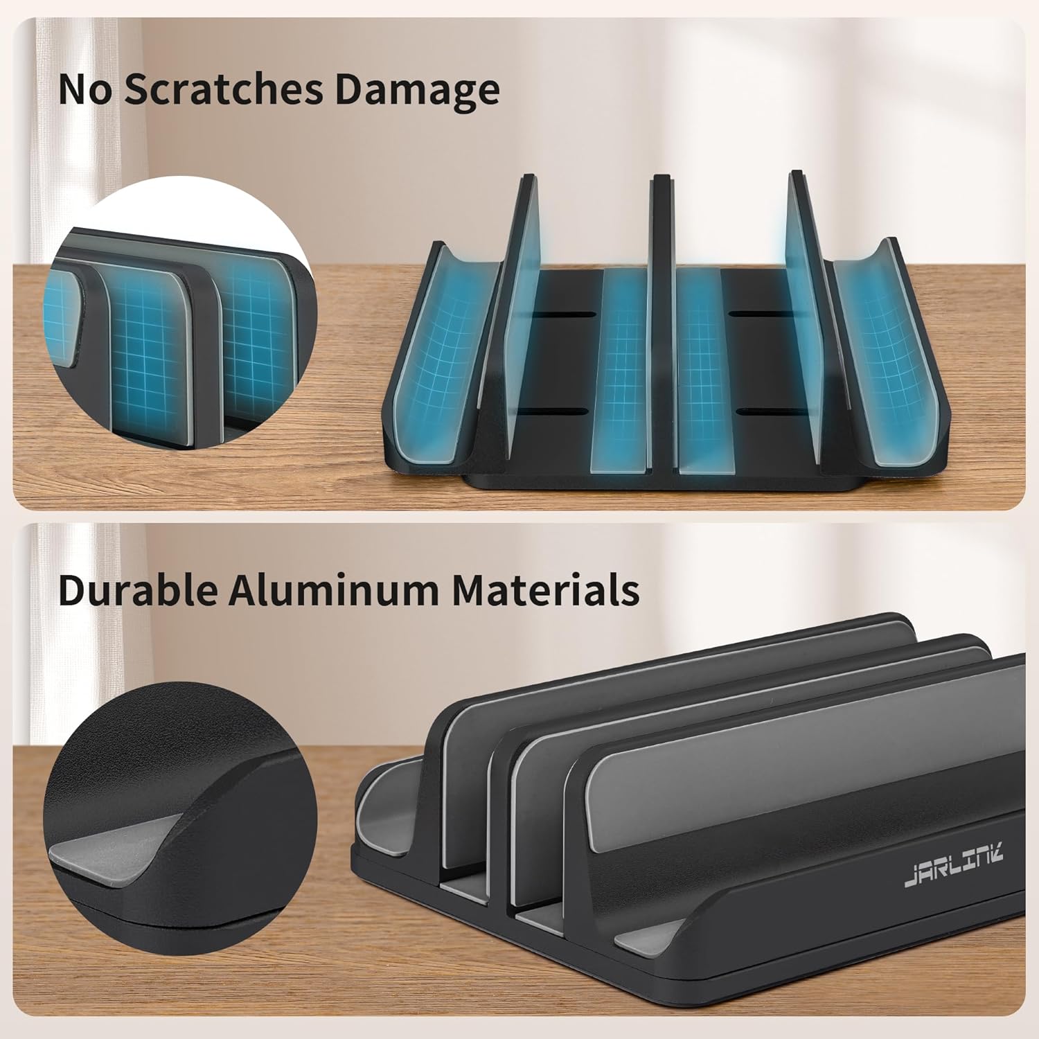 JARLINK 4-in-1 Adjustable Vertical Laptop Stand Holder, Aluminum Dual Slots Laptop Rack for Desk, Space-Saving Organizer Compatible with All MacBook, Surface, Chromebook, and Gaming Laptops (Black)