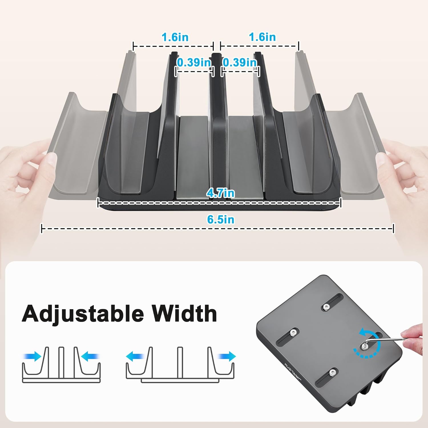 - Adjustable and Universal: Included Allen key allows easy size adjustment to suit laptops of various thicknesses from 0.39 inches to 1.6 inches. The vertical laptop stand's compatibility spans a wide range of devices like MacBook Pro/Air, Microsoft Surface, Chromebook, Dell, Samsung, Lenovo, Acer, Sony, Asus XPS, HP ENVY Series, and even books.