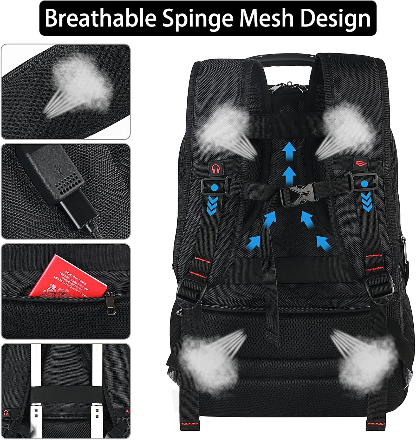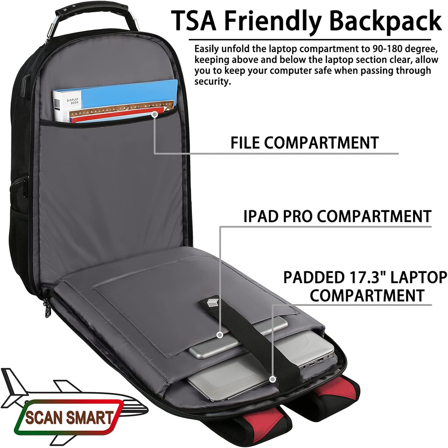 17.3 Laptop Backpack, Extra Large Travel laptop Backpack with Rain Cover, TSA Friendly Flight Approved with RFID Anti Theft Pocket and USB Charger Port, Water Resistant College Bag for Men and Women