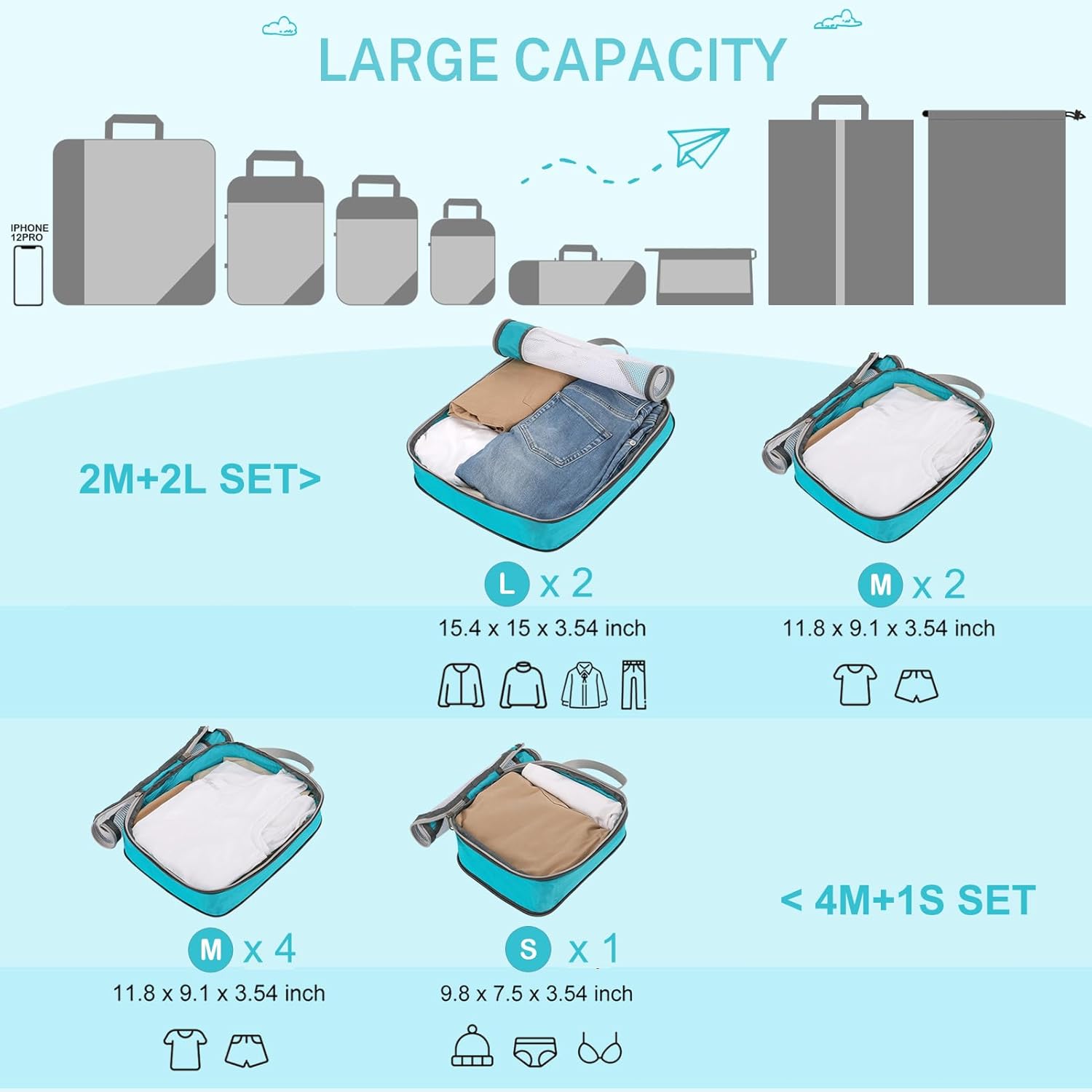 - Versatile Use: Used as a packing cubes set for business travel, family vacations, camping, hiking, sports, gyms exercise, beach, etc. or a home storage cubes set.