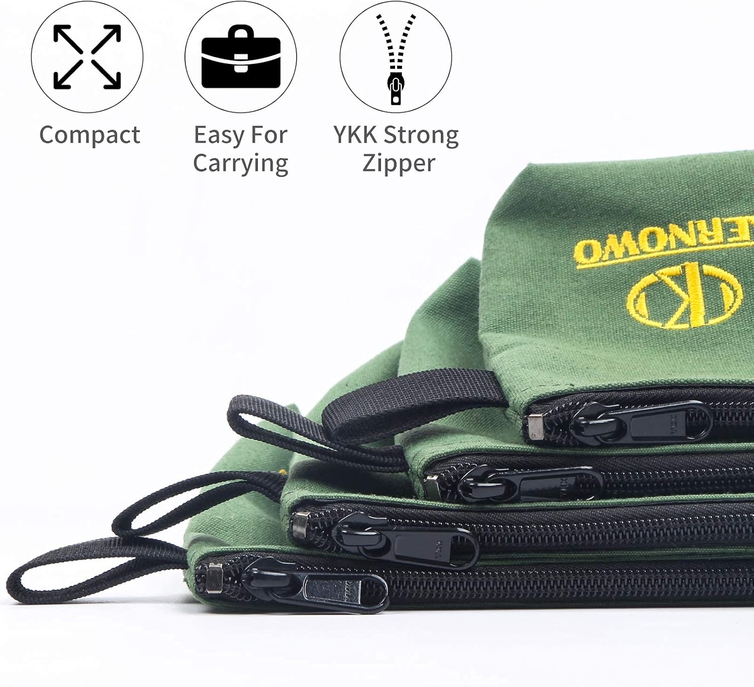 4 Pcs Upgrade Canvas Zipper Tool Pouch, 20 oz Heavy Duty Tool Bag, Water Resistant Utility tools Organizer, 7.5/9.5/11.5/13 inch Spacious Storage Pouches with Dependable YKK Nylon Zippers by KERNOWO