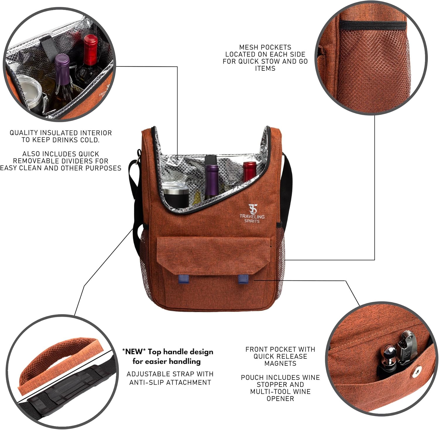 Insulated Wine Carrier | 2-3 Bottle Travel Bag With Stainless Steel Tumblers | Cooler Tote for Travel - Great Gift for Wine Lovers and Enthusiasts