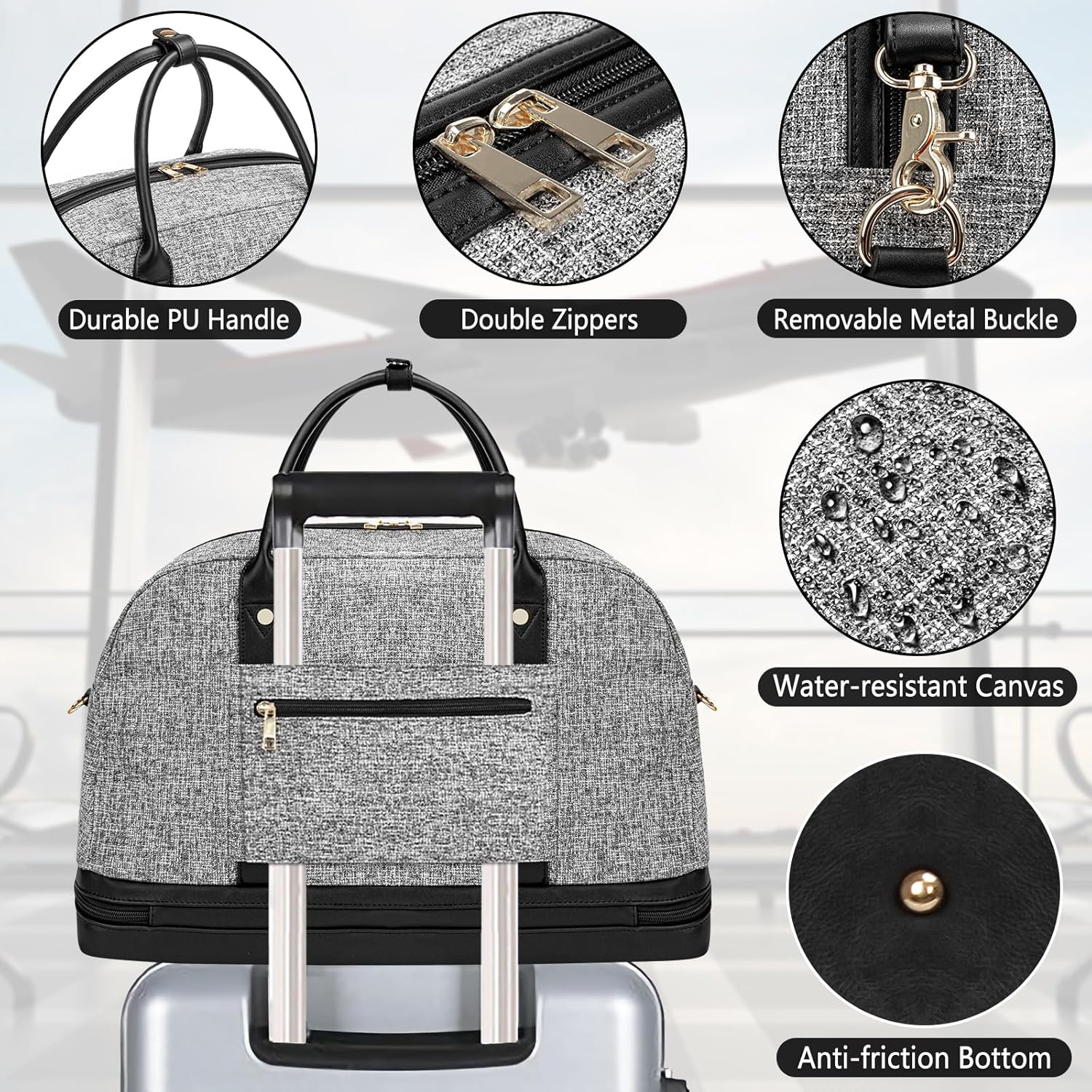 Weekender Bag for Women Canvas Overnight Bag Large Travel Tote Bag Carry on Shoulder Duffle Bag With Shoe Compartment,Perfect for Travel/Daily Use/Birthday Gift …