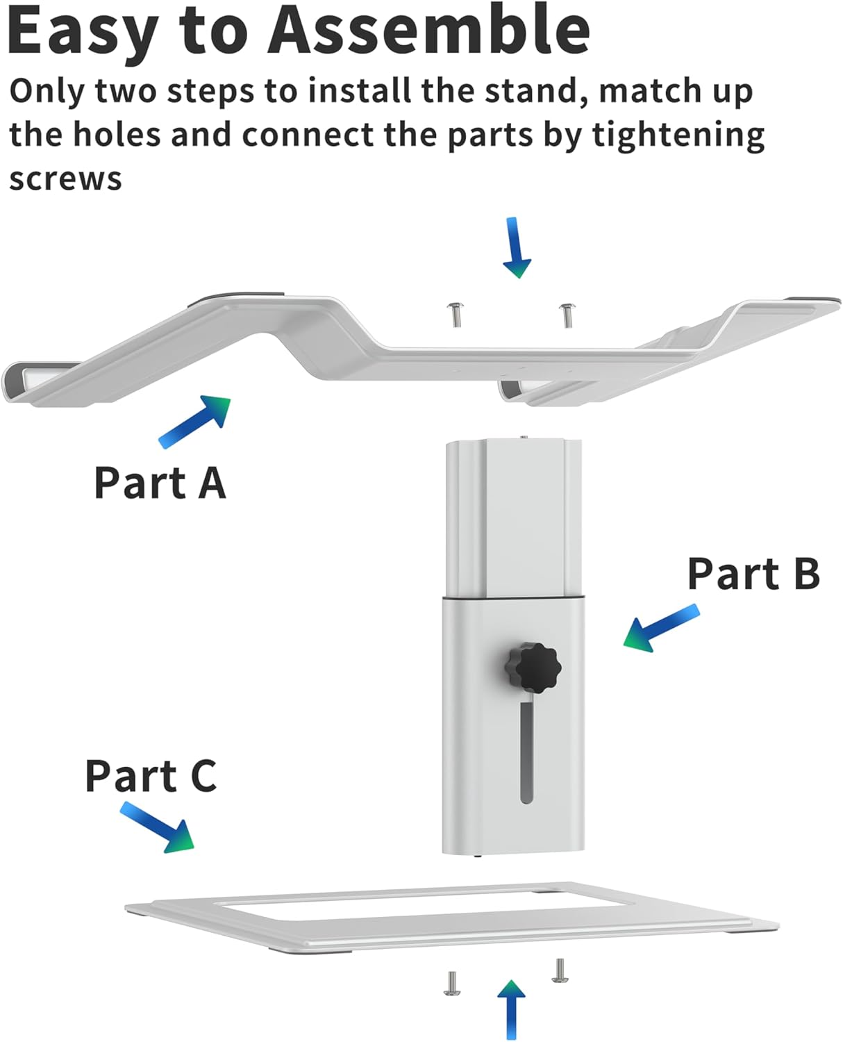 - Protective and Easy Installation - The silicone pads on the surface keep your laptop stay in place and protect your device from scratches. BTW, it just need two steps that you can install the stand, match up the holes and connect the parts by tightening screws.
