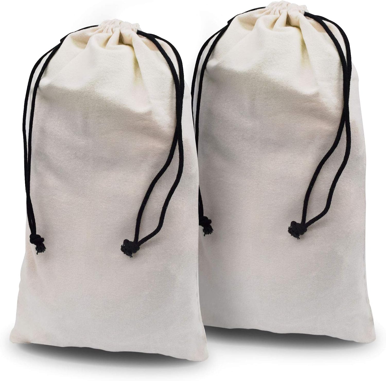 ZENPAC Travel Shoe Bag, Beige Duster Flannel Pouch Drawstring Closure, Washable Breathable Cotton Fabric for Cowboy Boot Storage, Luggage, 12x17, 2 Pack