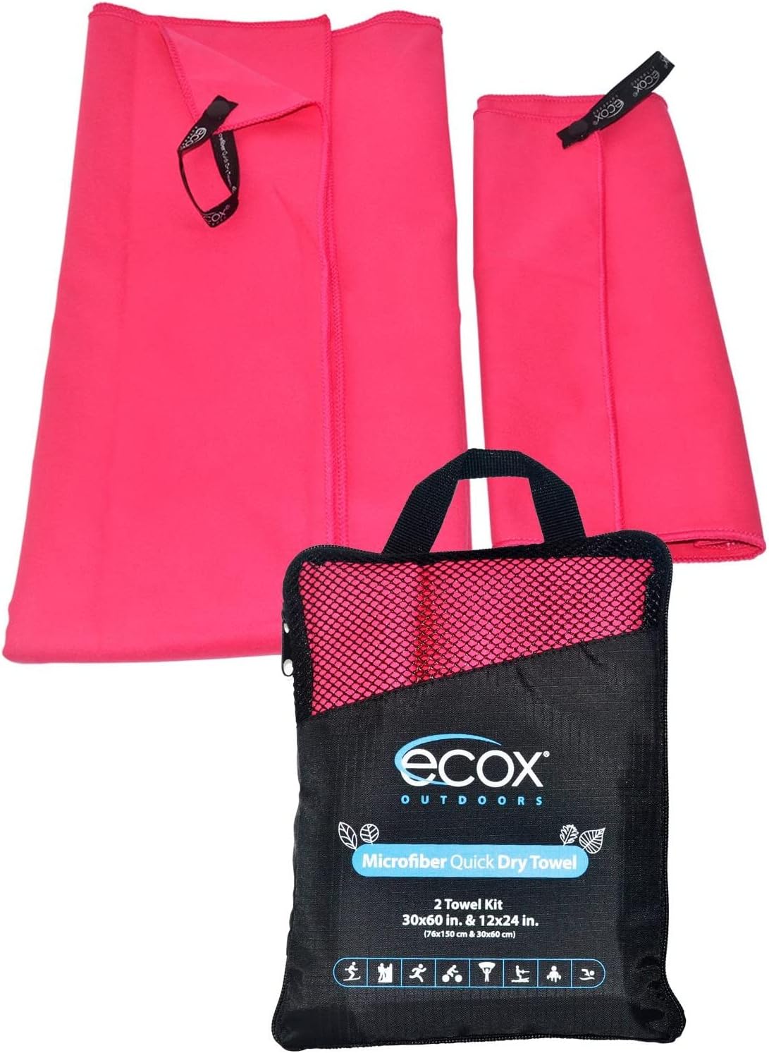 Outdoors Microfiber Towel Fast Drying Soft Feel Fast Action Drying for Gym Beach Outdoors Travel Yoga Camping Compact Size 2 Piece Set 30x60 in and 12x24 in Red MFT2PRD