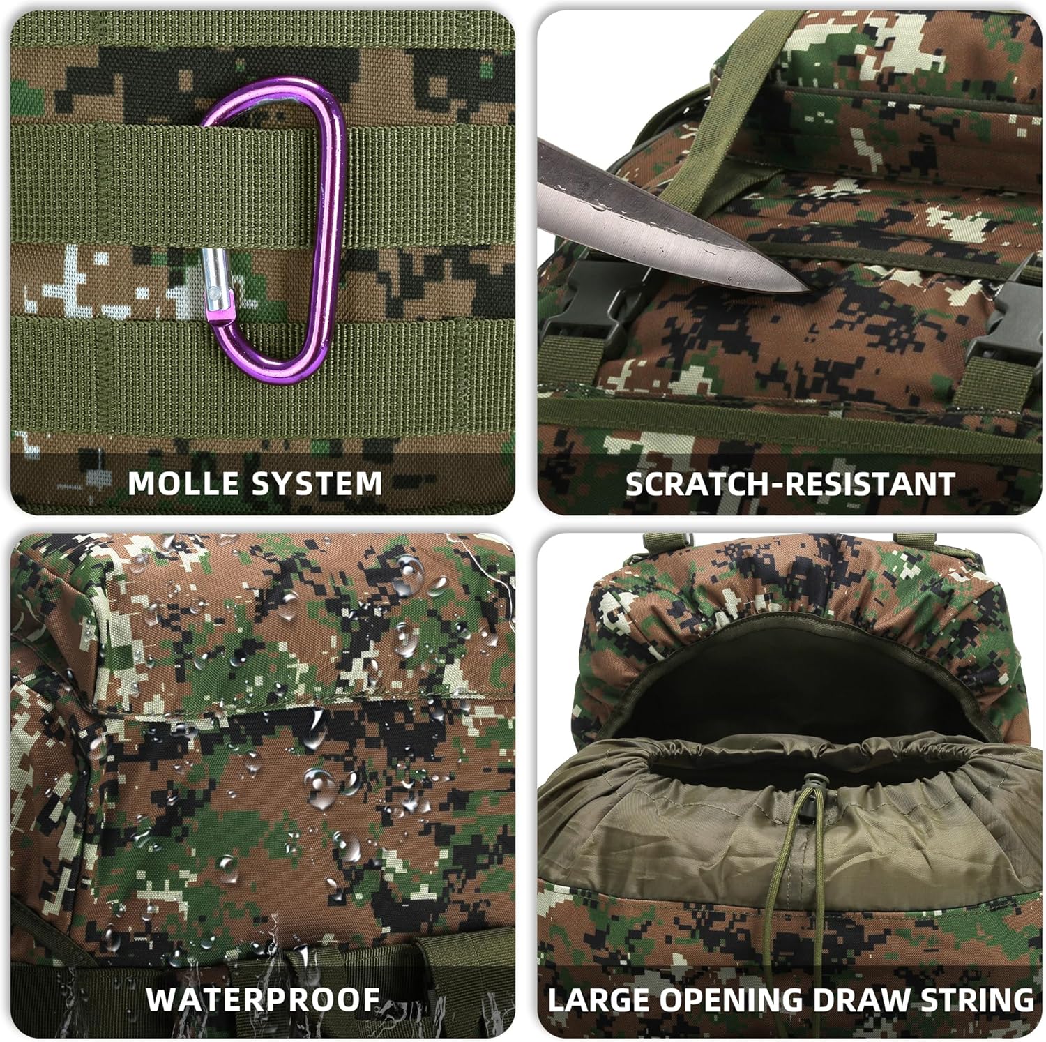 • 【Molle Backpack Size】: Hiking backpack size 11.81*15.74 * 29.52 inch, This mountaineering backpack weighs only 2.97lbs / 1.35 kg for easy carrying, and will not add burden to your travel. waterproof backpack for men is suitable for camping, hiking, traveling, climbing. camo backpack can replace a suitcase.