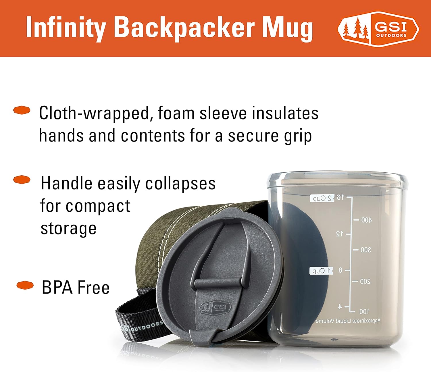 GSI Outdoors Infinity Backpacker Mug I Lightweight, BPA-Free Coffee Cup for Travel, Camping Gear, Backpacking and Outdoors - 17 oz.