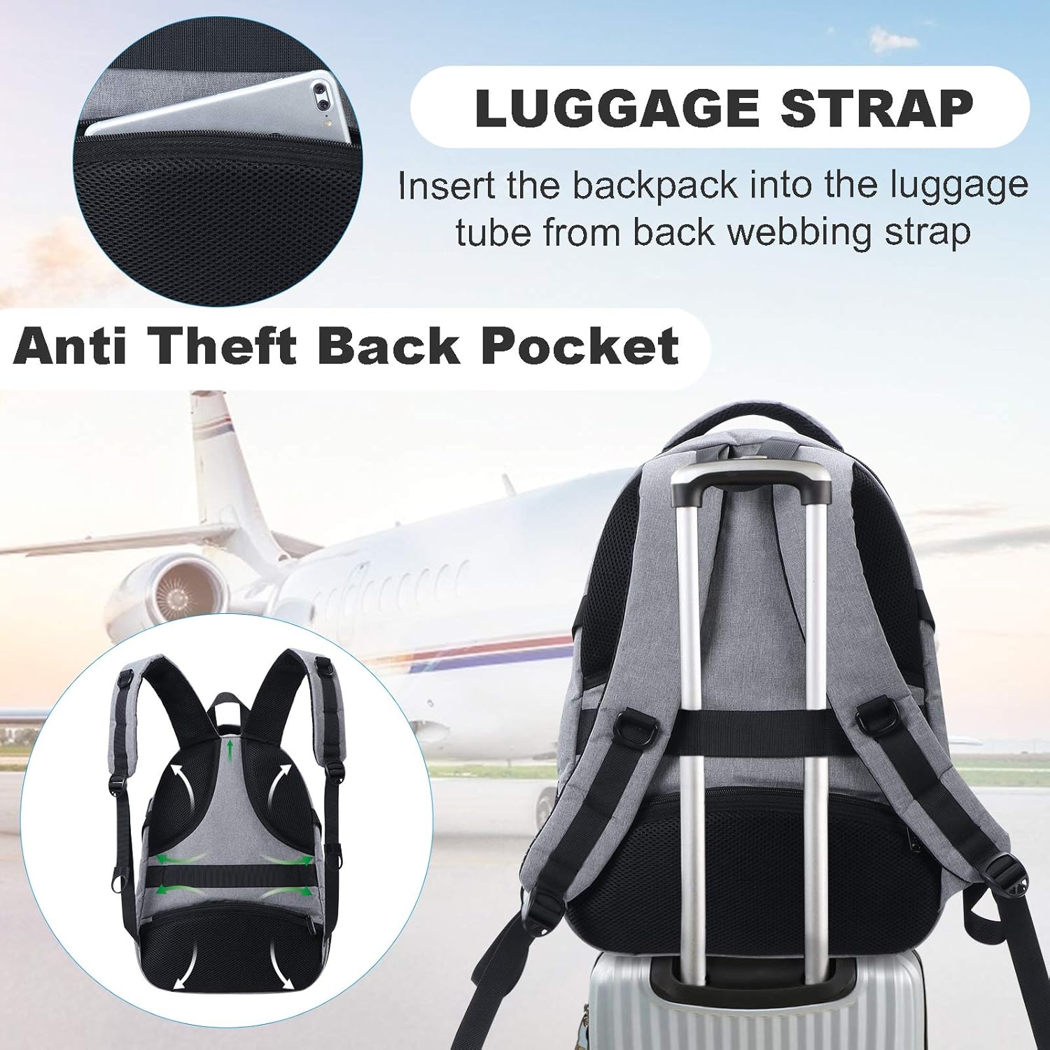 - FUNCTIONAL & SAFE: A luggage strap allows business backpack fit on luggage/suitcase, slide over the luggage upright handle tube for easier carrying. With a hidden anti theft zipper pocket on the back to protect your valuable items. Inside padded compartment can well preserve your laptop and pad. Make your journey more relaxing and enjoyable