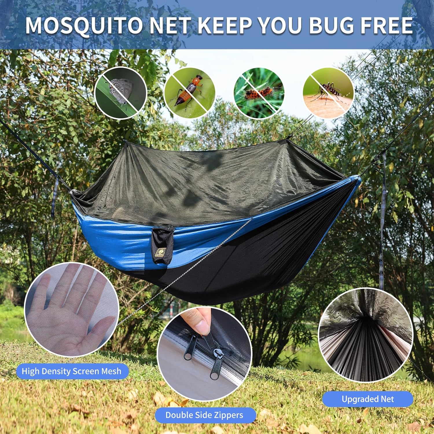 Camping Hammock with Net,Travel Portable Lightweight Hammocks with Tree Straps and Solid D-Shape Carabiners,Parachute Nylon Hammock for Outsides Backpacking Beach Backyard Patio Hiking