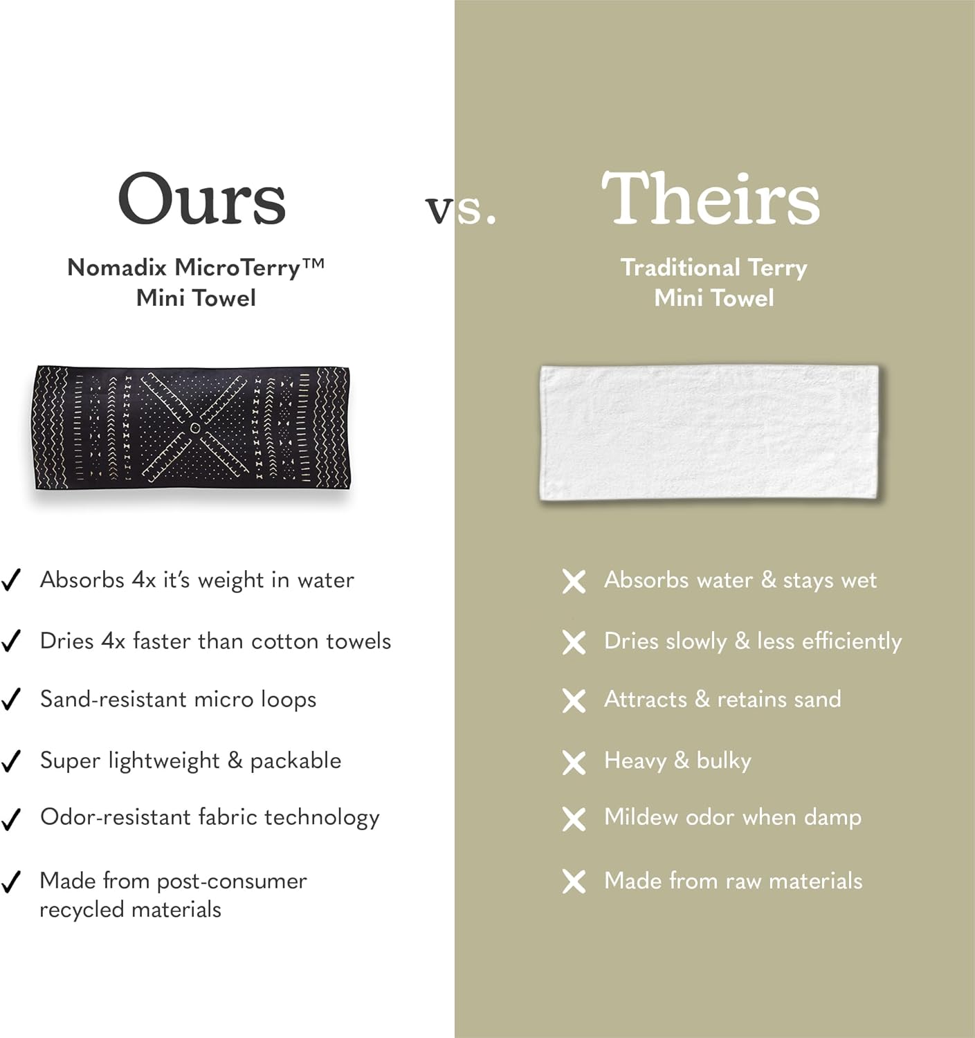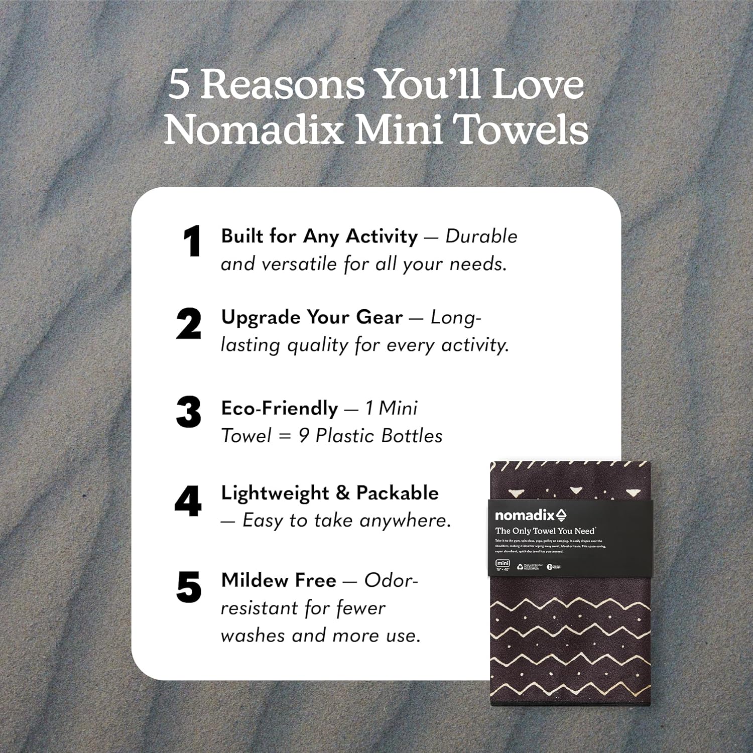 Nomadix Mini Towel - Perfect for Beach, Pool, Travel, Camping, Yoga - Made with Recycled Materials - Super Absorbent - Sand Resistant - Mud Cloth - 16x40
