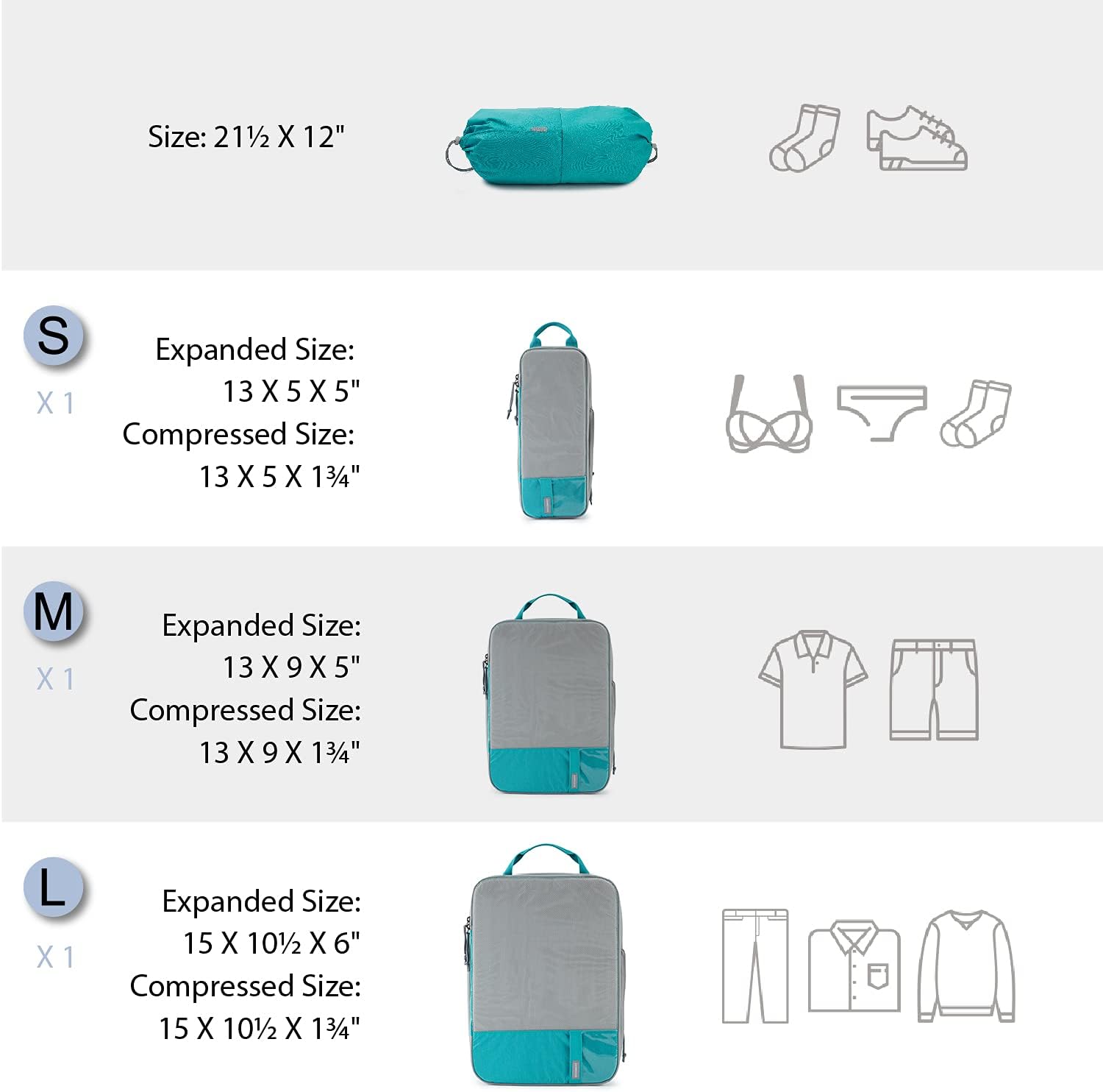 - 4 Set Compression Packing Cubes - If you'll be preparing multiple outfit options for your travel, you no longer have to sacrifice style for luggage space when you come across BAGSMART PACKING CUBES. Large for jackets, sweaters, and trousers, Medium for shirts, and blouses, Small for underwear, drawstring can be used as a laundry bag to separate your dirty/wet clothes or shoes.