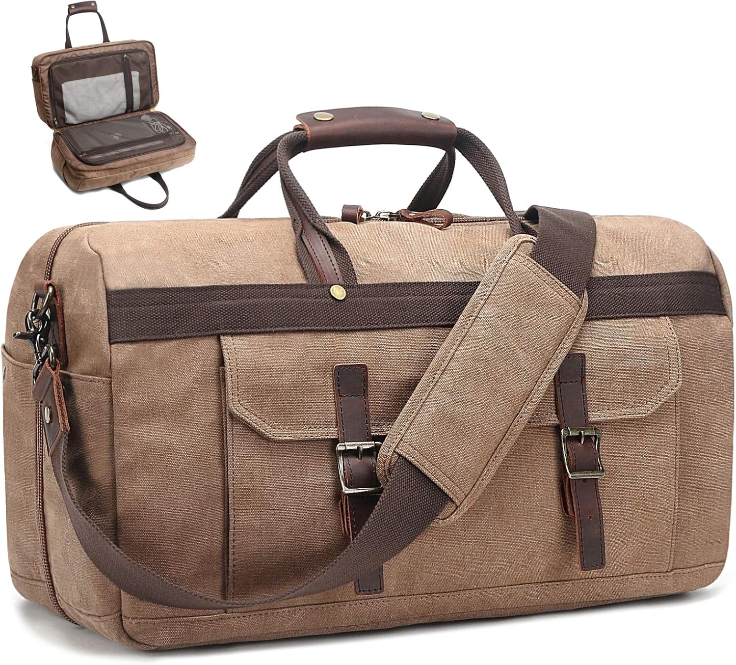 Duffle Bag for Men Waterproof Genuine Leather Canvas Travel Duffel Bags for Women Overnight Weekender Bag for Traveling