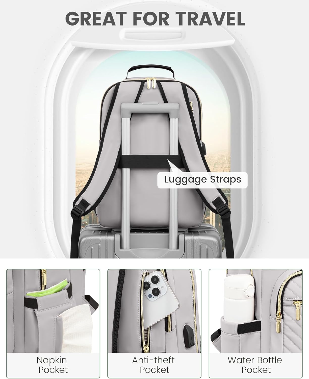 LOVEVOOK Laptop Backpack for Women, Travel Computer Work Bags with 17-inch Laptop Compartment, College School Student Bag Teen Backpacks For Girls, Outdoor Carry On Backpack Purse, Grey