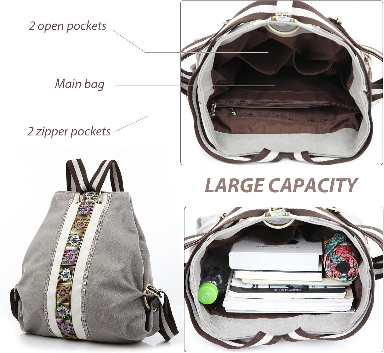 - Unique embroidery bag. Made by high quality Canvas, Copper buckle and zipper. Soft Casual style and Lightweight.