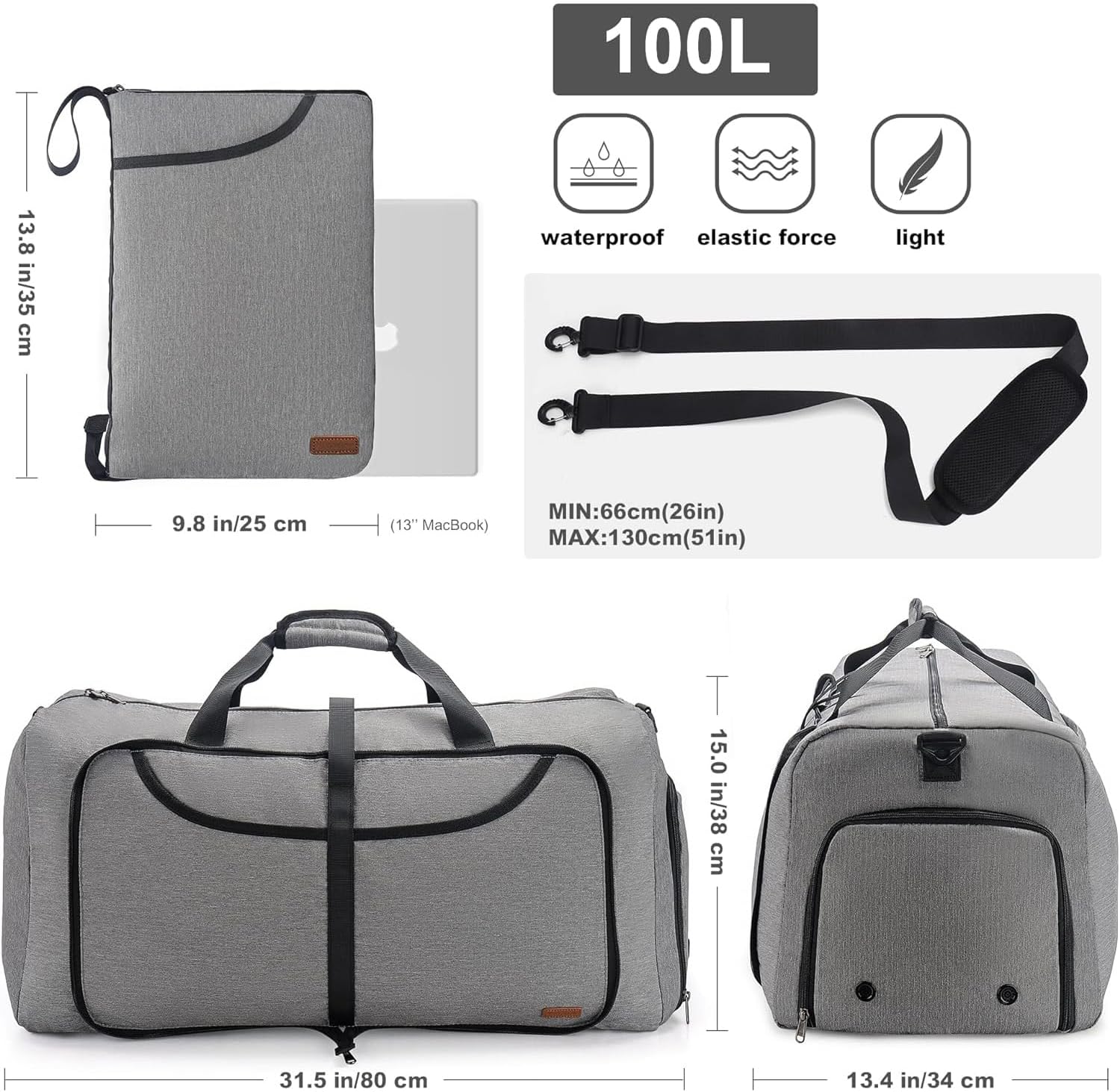 100L Duffle Bag for Travel, Large Foldable Waterproof Travel Duffel Bags Weekender Overnight Bag for Men and Women with Shoe Compartment