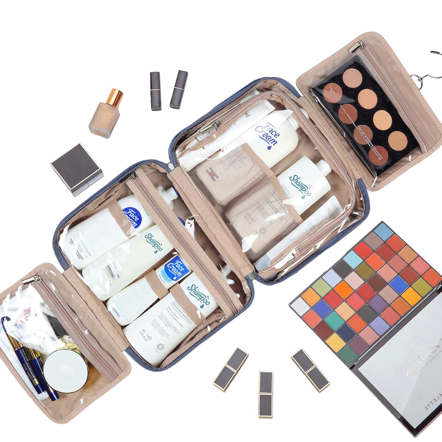 NISHEL Travel Toiletry Bag for Women Large Capacity, Makeup Essentials Organizer, Hanging Case for Accessories, Cosmetics, Aegean-Blue
