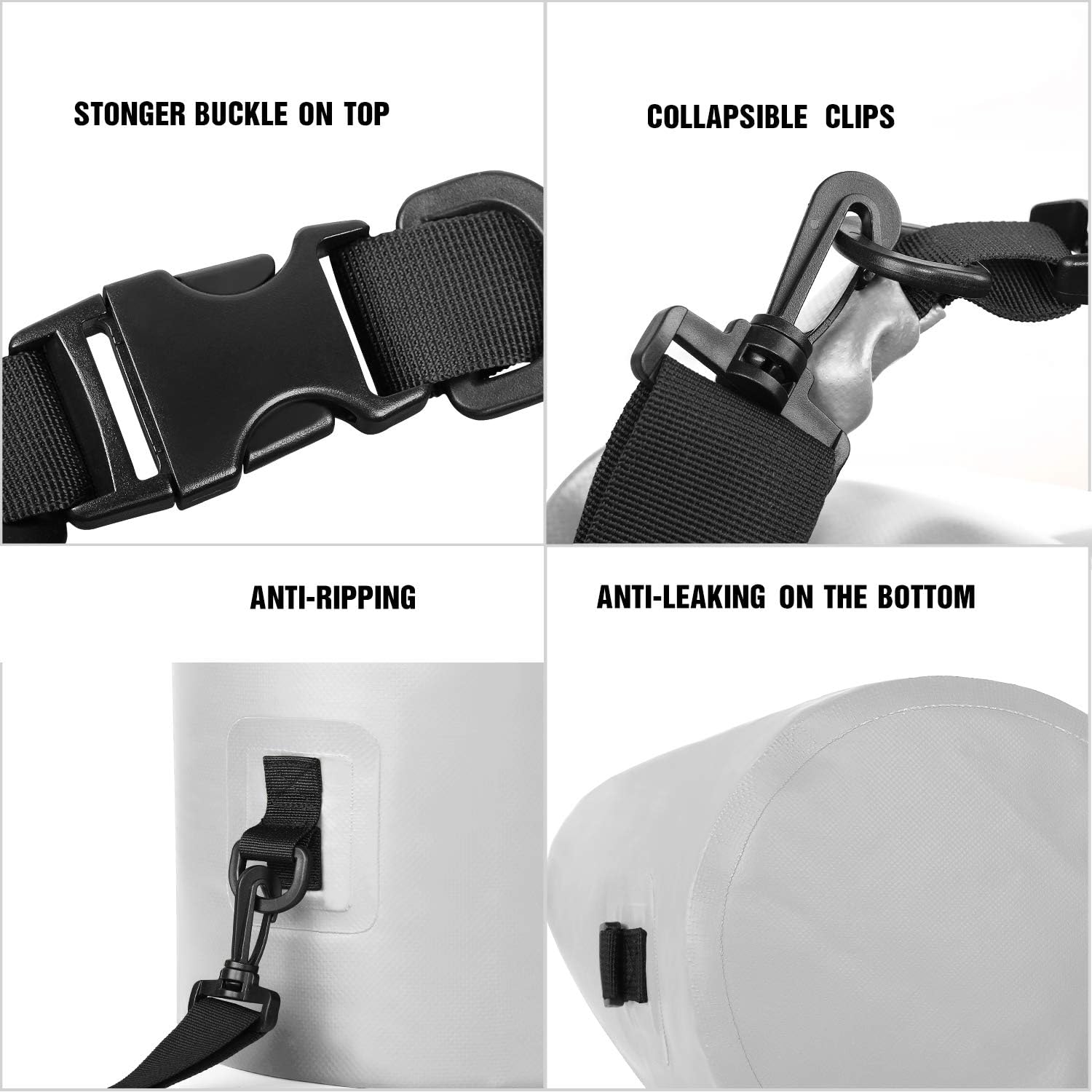 - VERSATILE AND DURABLE: You can leave the dry bag float on the water during river trip or other water sporting, no more worry about your items getting wet. The buckle and D-rings are upgraded with POM material, stronger than other traditional buckle. It will not break for frequent use