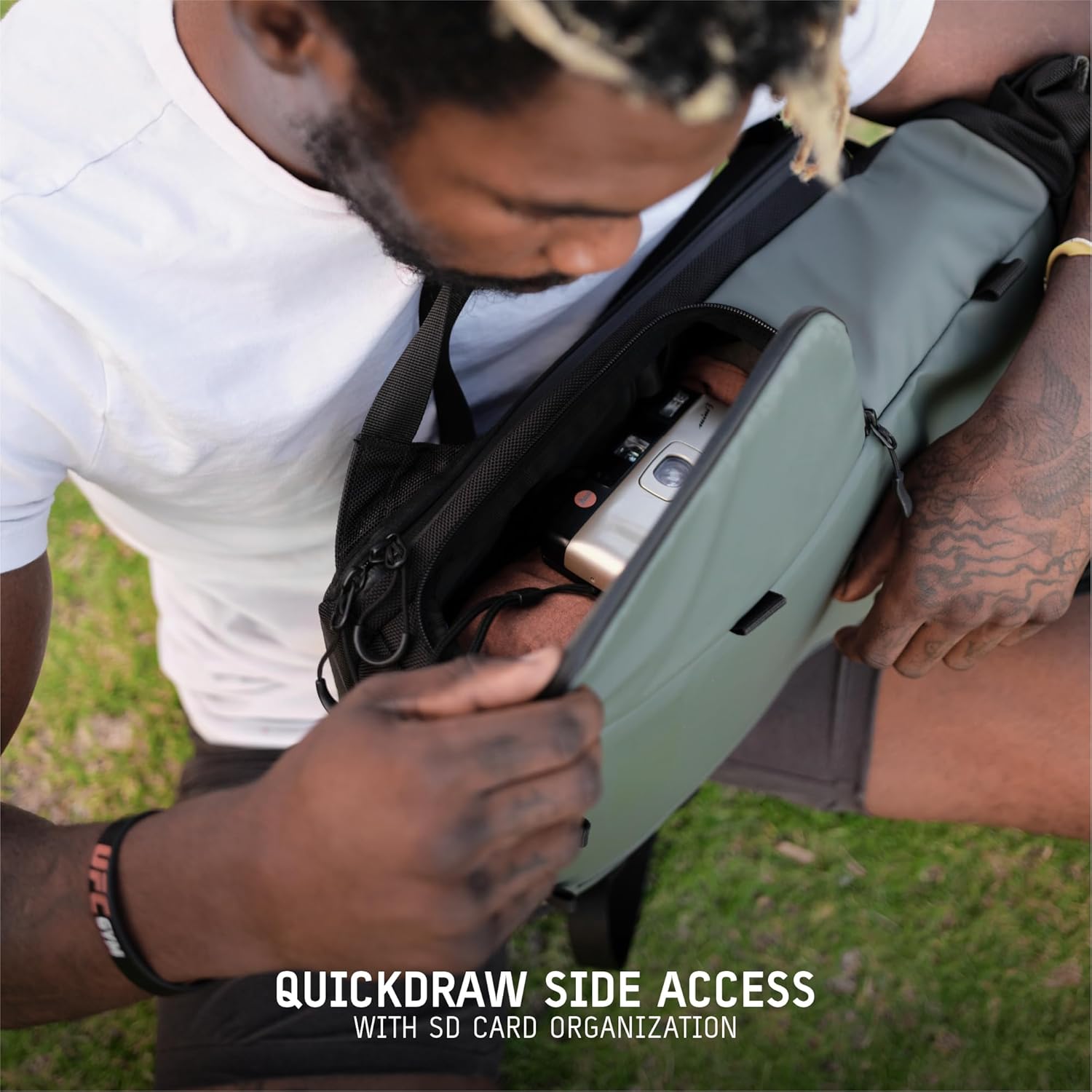 - 3 Points of Access: Quick side camera access ensures you capture every moment; Lay-Flat Clamshell Opening keeps equipment organized; Adjustable Roll Top provides quick access to personal items and expands to create extra space