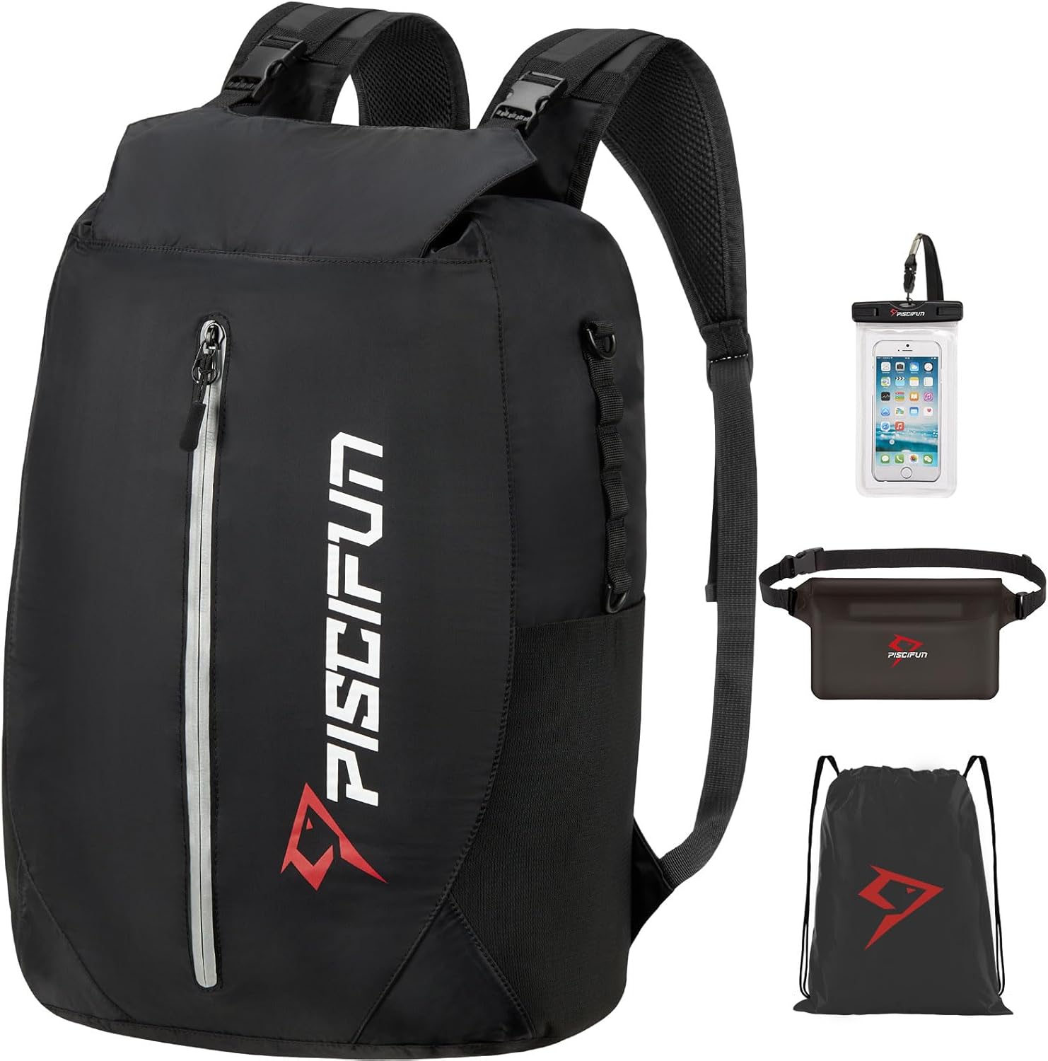 Piscifun Dry Bag Waterproof, Lightweight Dry Backpack Roll-Top Sealed with Waist Pouch and Phone Case Keeps Gear Dry Inside for Kayaking, Boating 10L 20L 30L