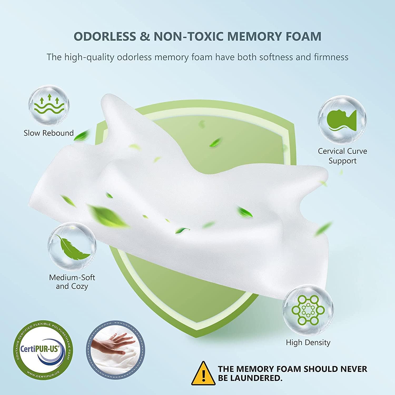 - 【Why not choose something all-natural and flavorless?】If you're sensitive to the smell of a memory foam pillow's off-gassing and want a natural and healthy pillow, this sutera pillow is a good choice. Our orthopedic pillow is made with high-quality odorless memory foam that is CertiPUR-US certified. It can provide firm support with amazing comfort and softness when sleeping. Moreover, it can slow rebound its shape within a few minutes and keep its shape and firmness for long-term use.
