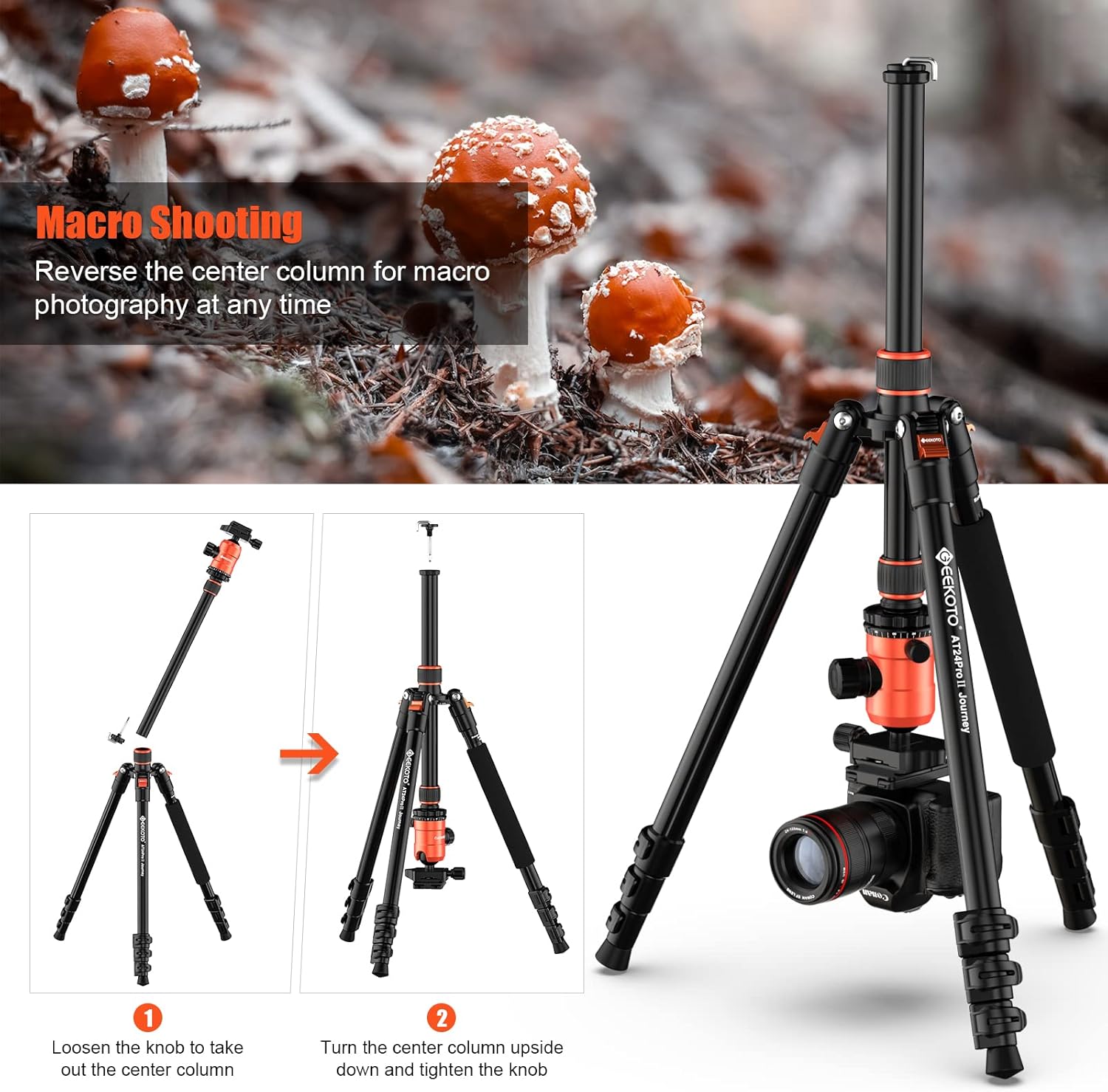 - 2-IN-1 TRIPOD MONOPOD: The aluminum tripod can easily turn into a monopod or walking stick, making your photography more versatile and a great companion for your hiking or travel. And the center pole can be inverted for low-angle shots and macro photography.