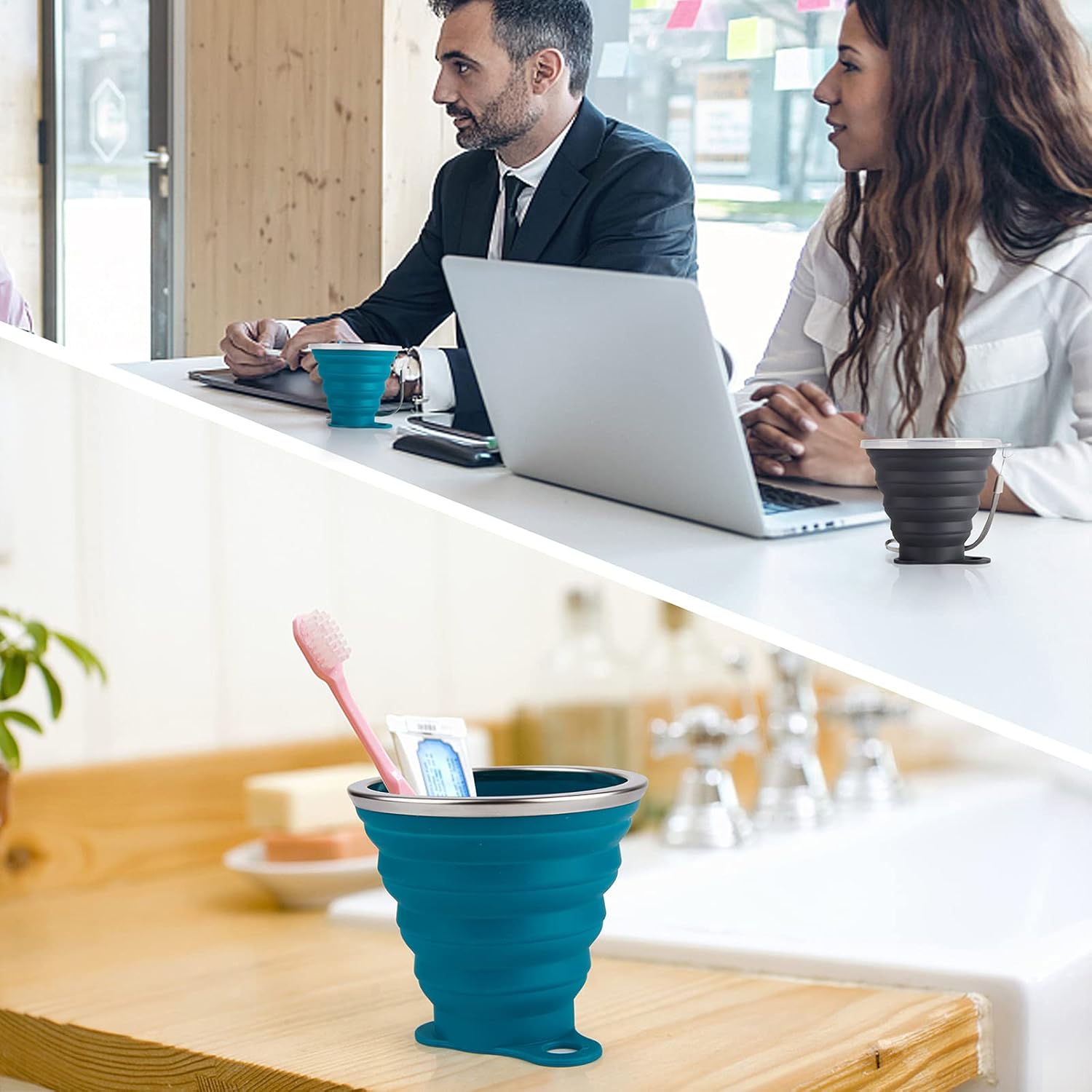 - ✿Ultrathin Folding: Each camping cup is only 0.59″ high when collapsed, only weighs 2.4oz, fits well in pocket or backpack. Can be hung on the bag with hand rope.