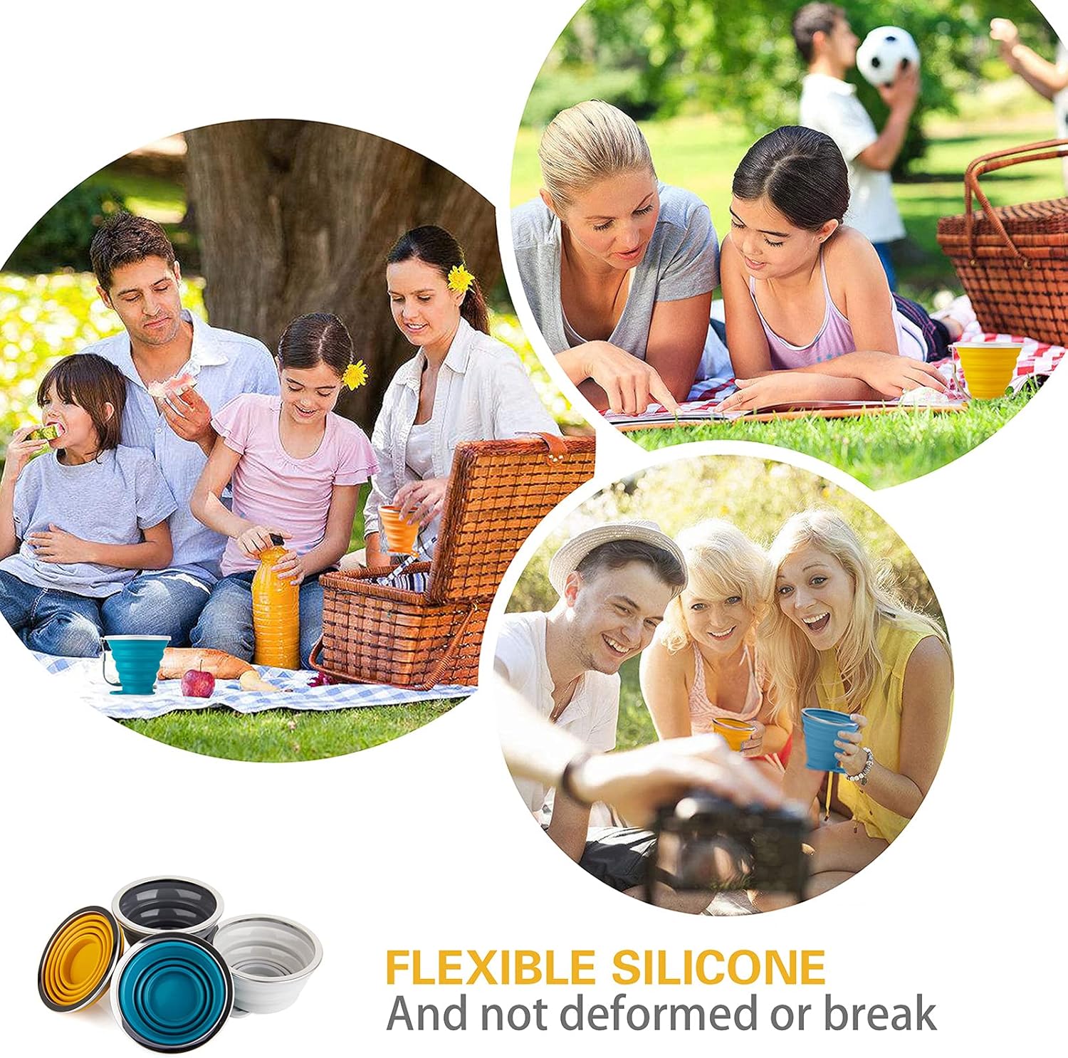 - ✿Health Quality: Collapsible cups are made of food-grade silicone, BPA-free, non-toxic, Eco friendly. The lightweight cups suit for hiking, camping, picnic, sport events .