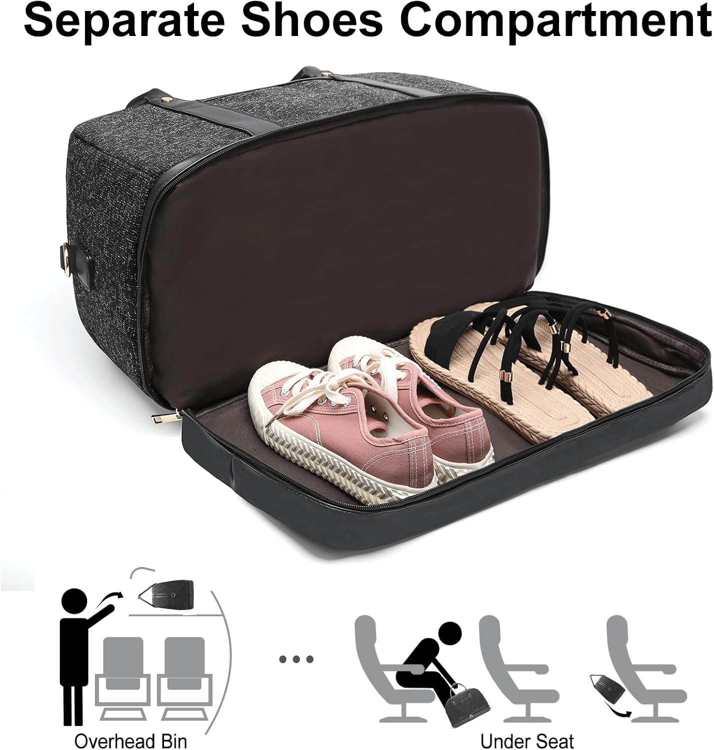 - 【Separate Shoes Compartment】This travel bag for women has a shoe pouch which can stores your shoes or dirty clothes, keeps your shoes or dirty clothes separate from the main compartment. Keeps you organized and takes the hassle out of packing!