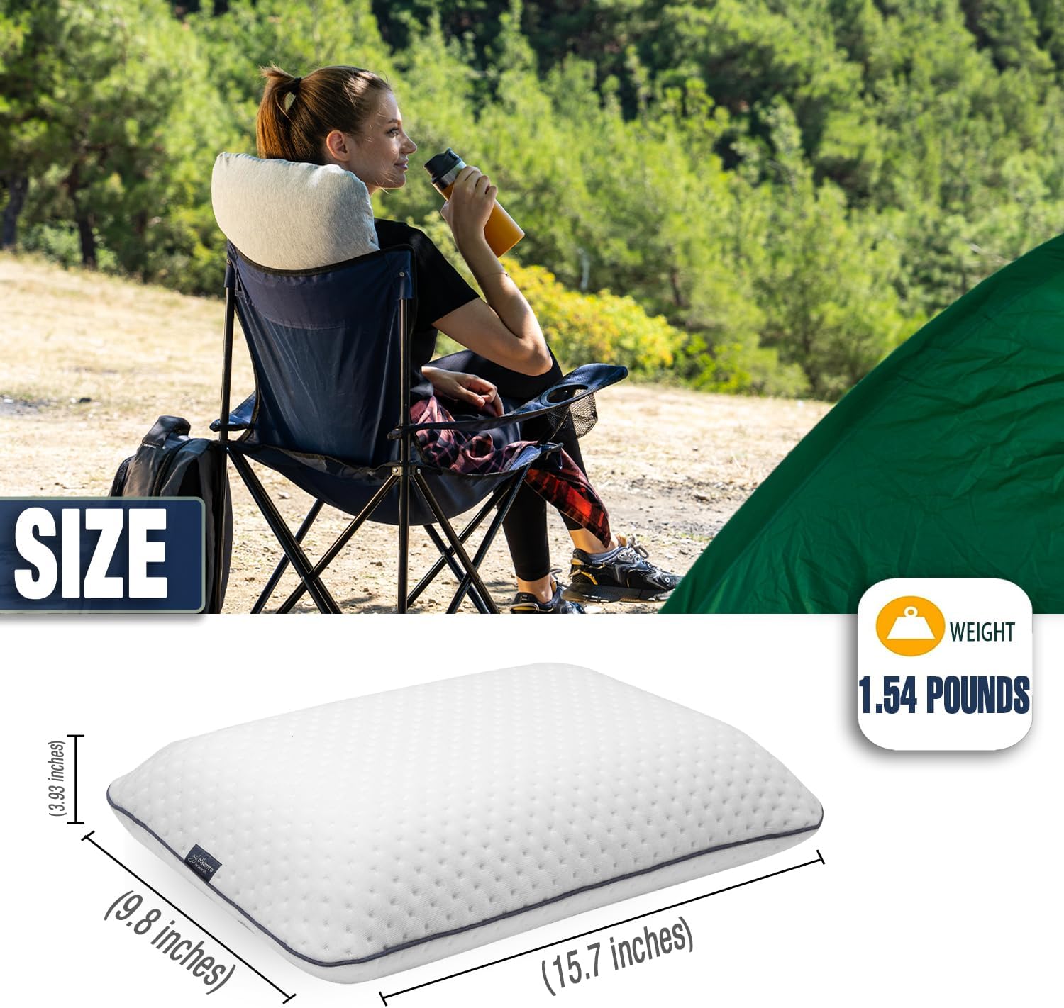 - ✔ LIGHT & EASY TO PACK - Easy to carry pillow around for all kinds of trips (like camping / fishing / backpacking / hiking / beach / festival) its lightweight design and travel case. Compressible and self-inflatable, easily be fitted inside its compact and small travel bag and rises up to its full shape once taken out in a matter of seconds. Ideal to take on airplanes, trains and cars or for outdoor activities along other camping gear, hiking and travelling accessories.