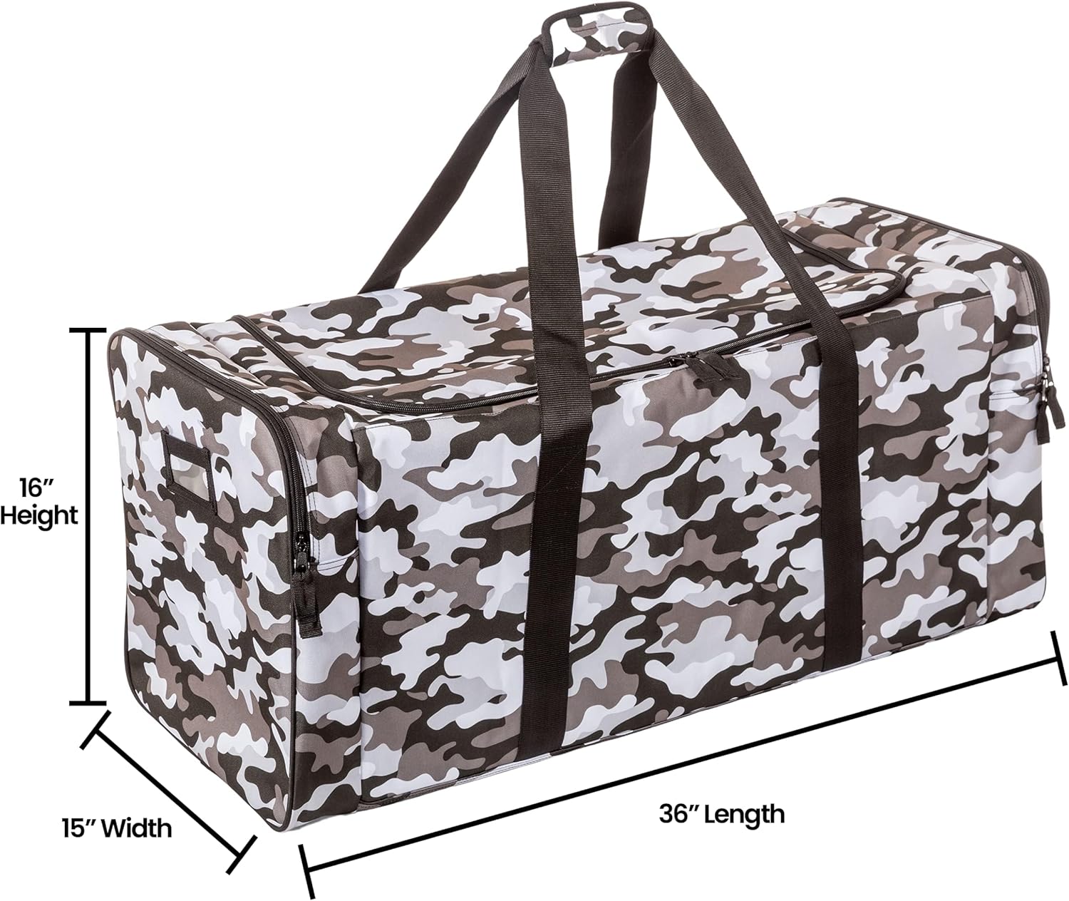 - šššššššššš: The foldable feature of our duffle bag makes it ideal for an easy storage option, fit it in your locker, your car or in the garage. Dimensions are - 36"L x 16"H x 15"D and 16"L x 2āH x 15"D when folded
