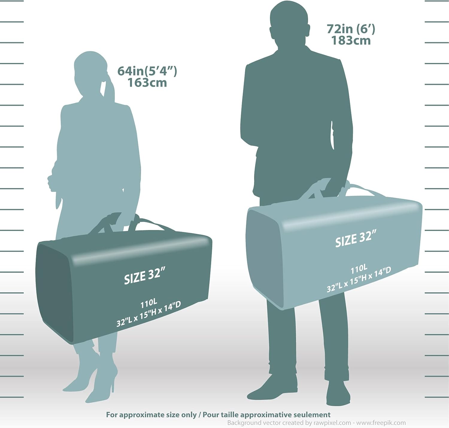- ššš š šš ššš šššš: The foldable feature of our duffle bag makes it ideal for an easy storage option, fit it in your locker, your car, or in the garage. Dimensions are 32L x 15H x 14D inches and 15L x 2H x 14D inches when folded