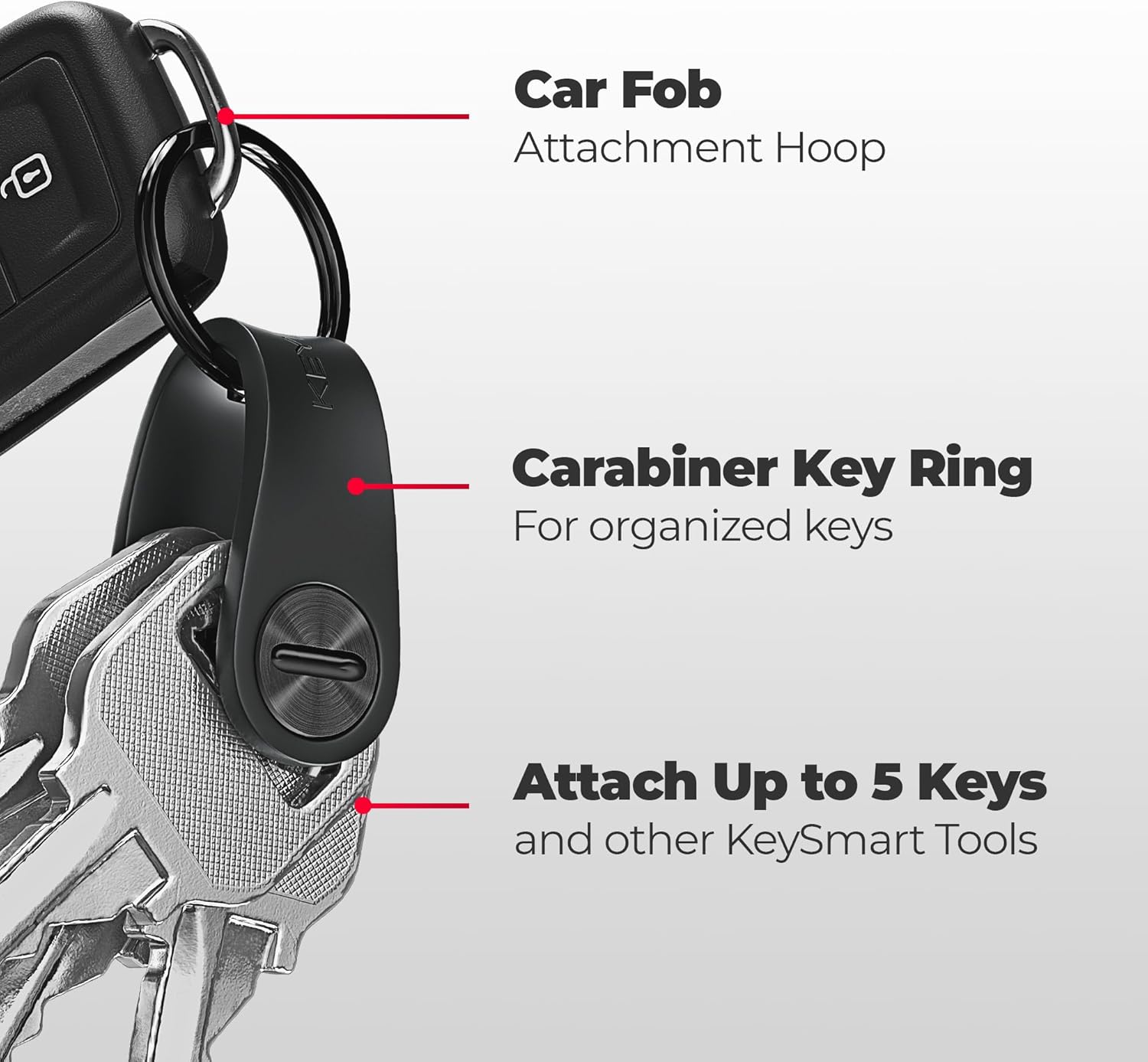 - Organize up to 5 Keys, with a loop for your Car Fob: Simplify your daily carry with the KeySmart Mini Flex EDC compact key organizer keychain. Organize all your keys in one slim keychain key case that fits perfectly in your pocket and is smaller than a pack of gum. Key chains for car keys can be annoying, but the included compact keyring loop piece makes it easy to attach your car key chain fob, keeping everything in one place.