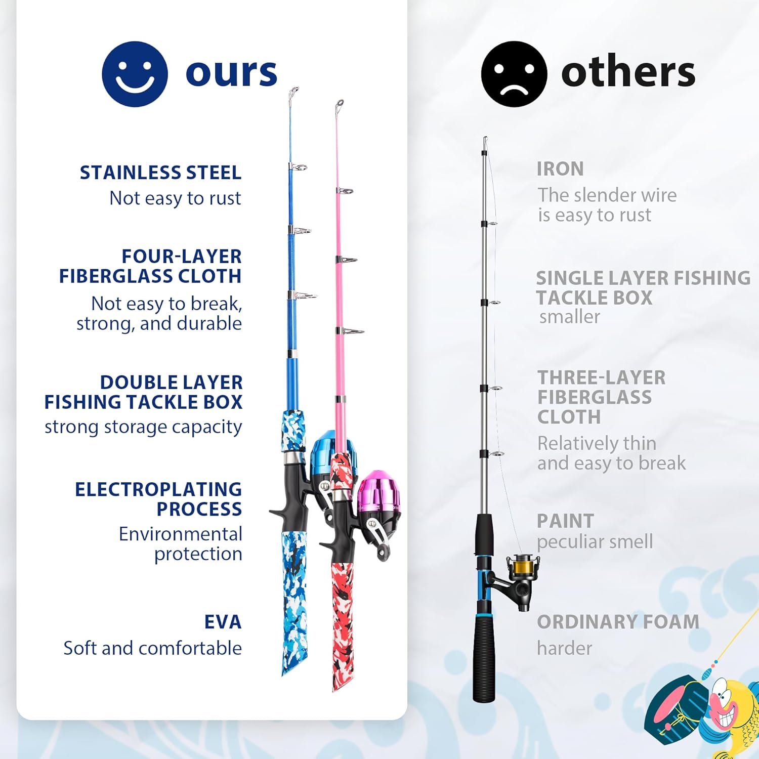 - HIGH-QUALITY: With four-layer fiberglass cloth, The toddler fishing pole has good toughness, is not easy to rust and break. It is safe for children. Guide eyes made of stainless steel instead of iron wire are harder and more durable