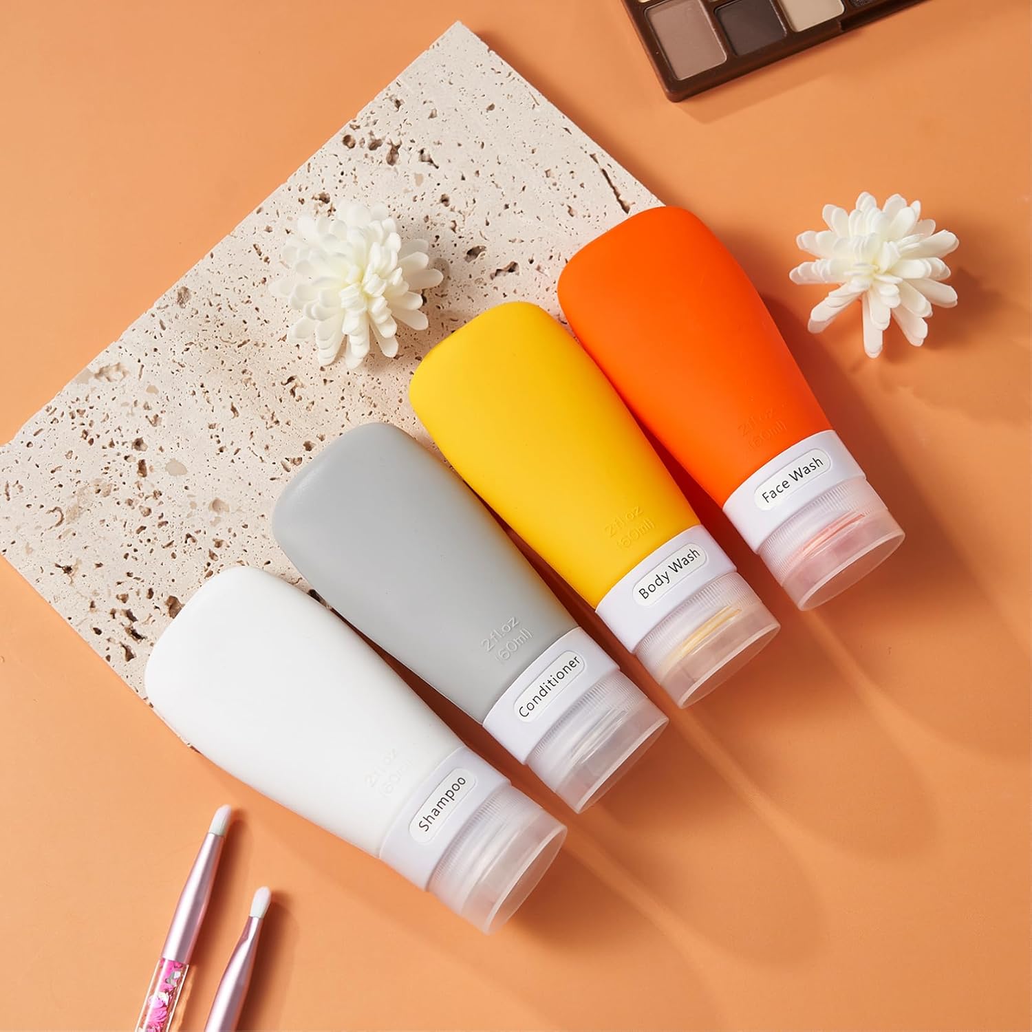 - Sturdy Squeezable Silicone Tubes: food grade BPA Free silicone bottles are safe to use, they are sturdy, durable also very flexible, eco-friendly travel bottles set is good to our enviroment; It provides you a better user experience with four nice colors and labeling stickers, easily helping you differentiate what fill with.