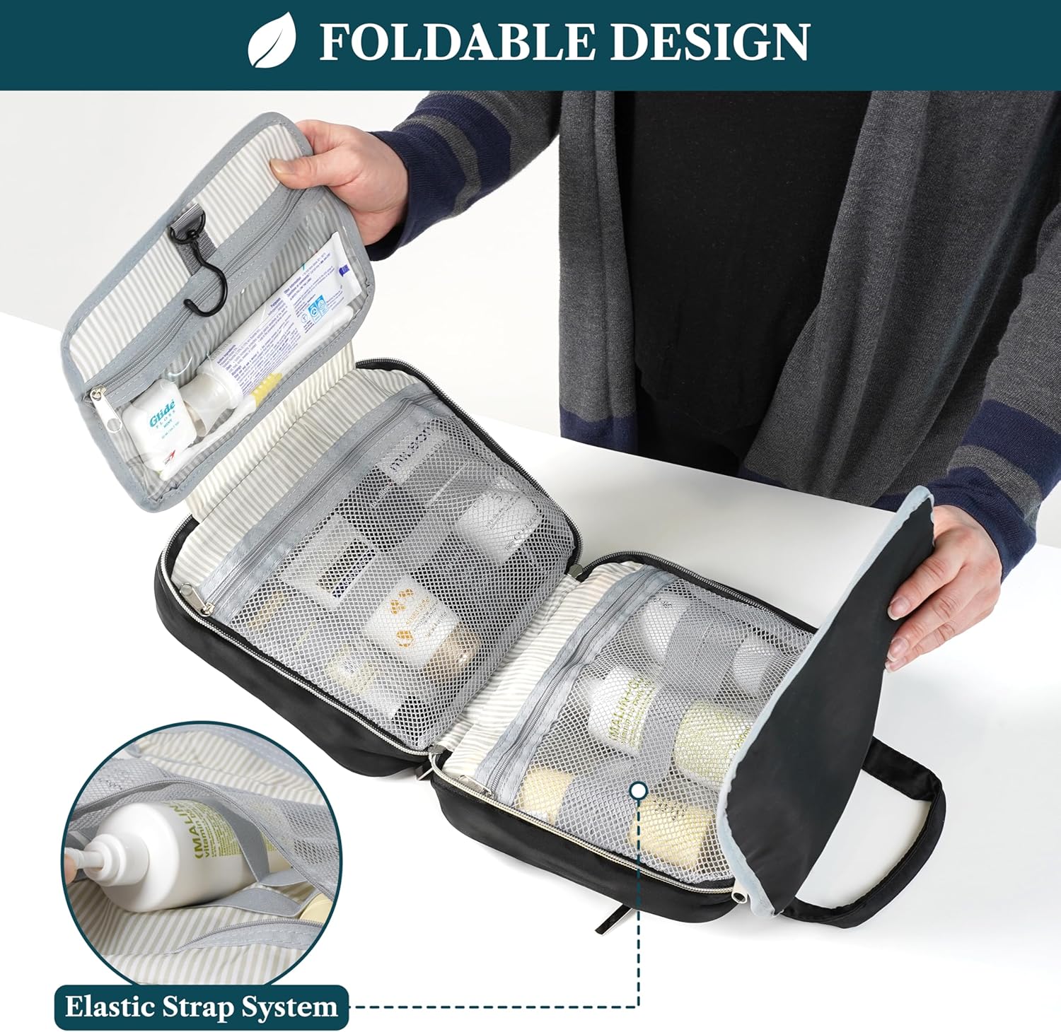 - PADDED MAKE UP BAG CASE: The toiletry case bag for men has foam padding that protects toiletries container, shampoo bottle during flying, roadtrip, and plane. The toiletry bag kit also has elastic bands that secure makeup brush, face spray, lipstick, shaving razors. One waterproof compartment for wet toiletries. This large hanging toiletry bag holder for women will protect all gear, cosmetics, and travel gadgets.