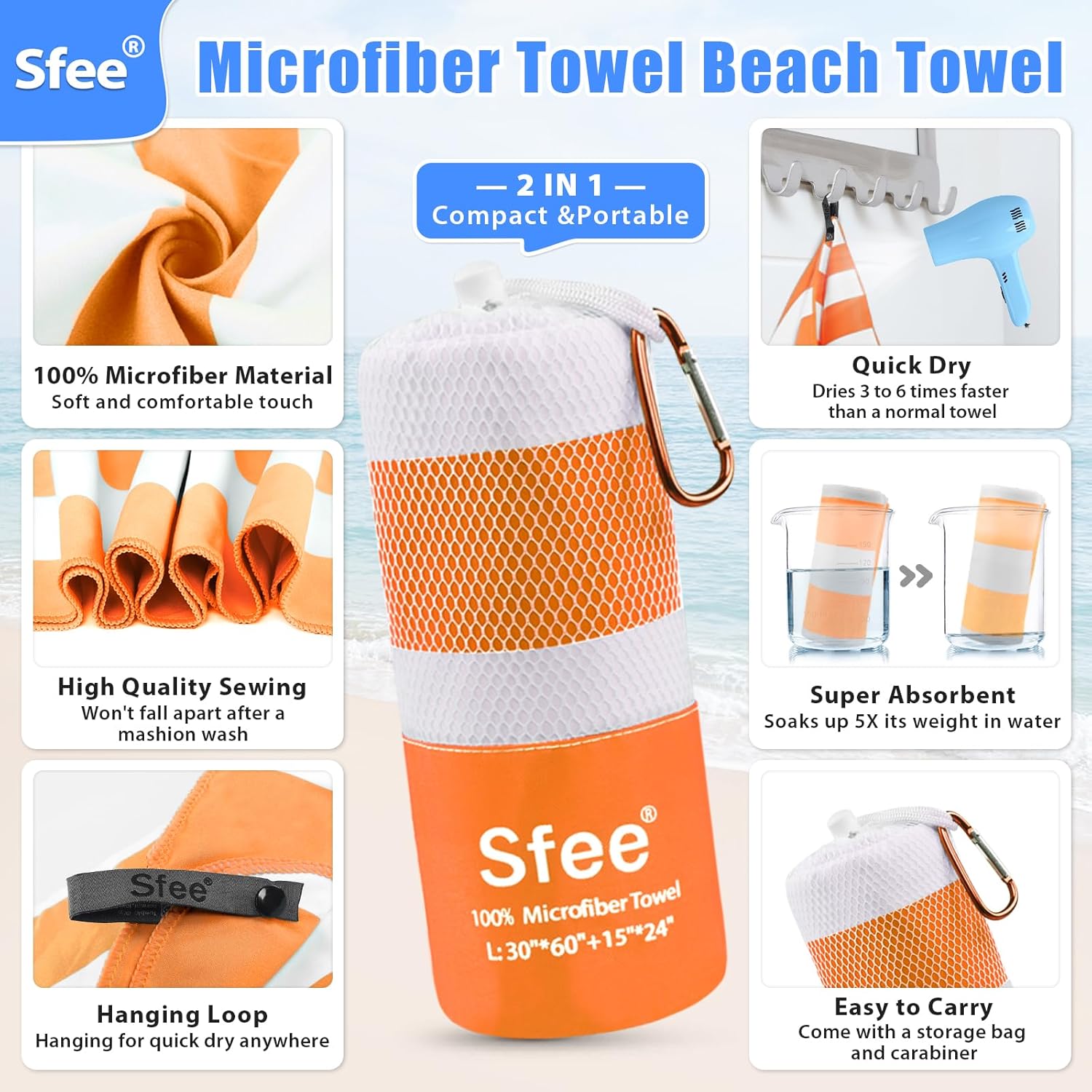 Sfee 2 in 1 Microfiber Beach Towel, Quick Dry Towel Camping Travel Towel Super Absorbent Compact Lightweight Sports Gym Towel Set for Beach, Gym, Hiking, Pool, Backpacking, Bath, Yoga