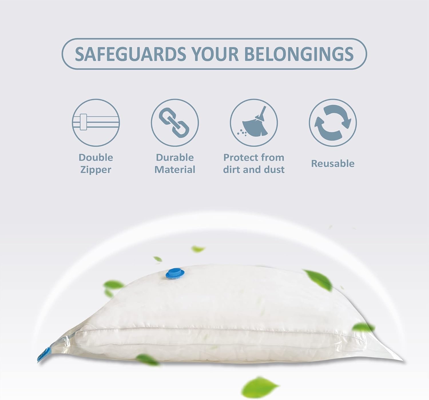- Variety Vacuum Storage Bags: Our combo includes 10 large vacuum compression bags. Reduce original volume by 80%. A must-have for home organization, moving, and travel. Store your clothes, bed sheets, blankets, and many more!