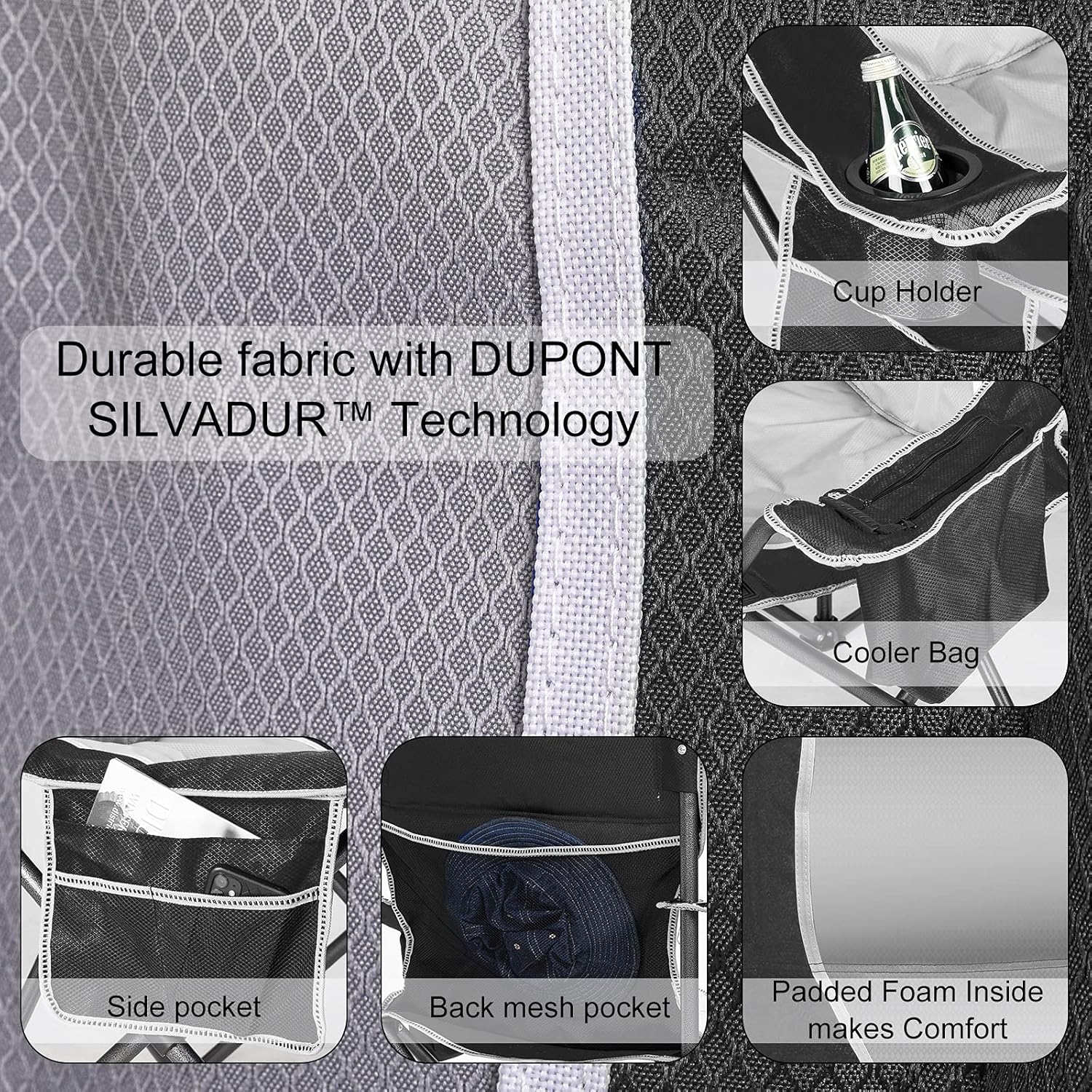 - šŖ HEAVY DUTY STEEL FRAME: This Camp Chair Uses Reinforced Frame With Two Extra Front Support Poles, Weight Capacity 475lbs. Durable Rustproof Coating For Long-term Use.