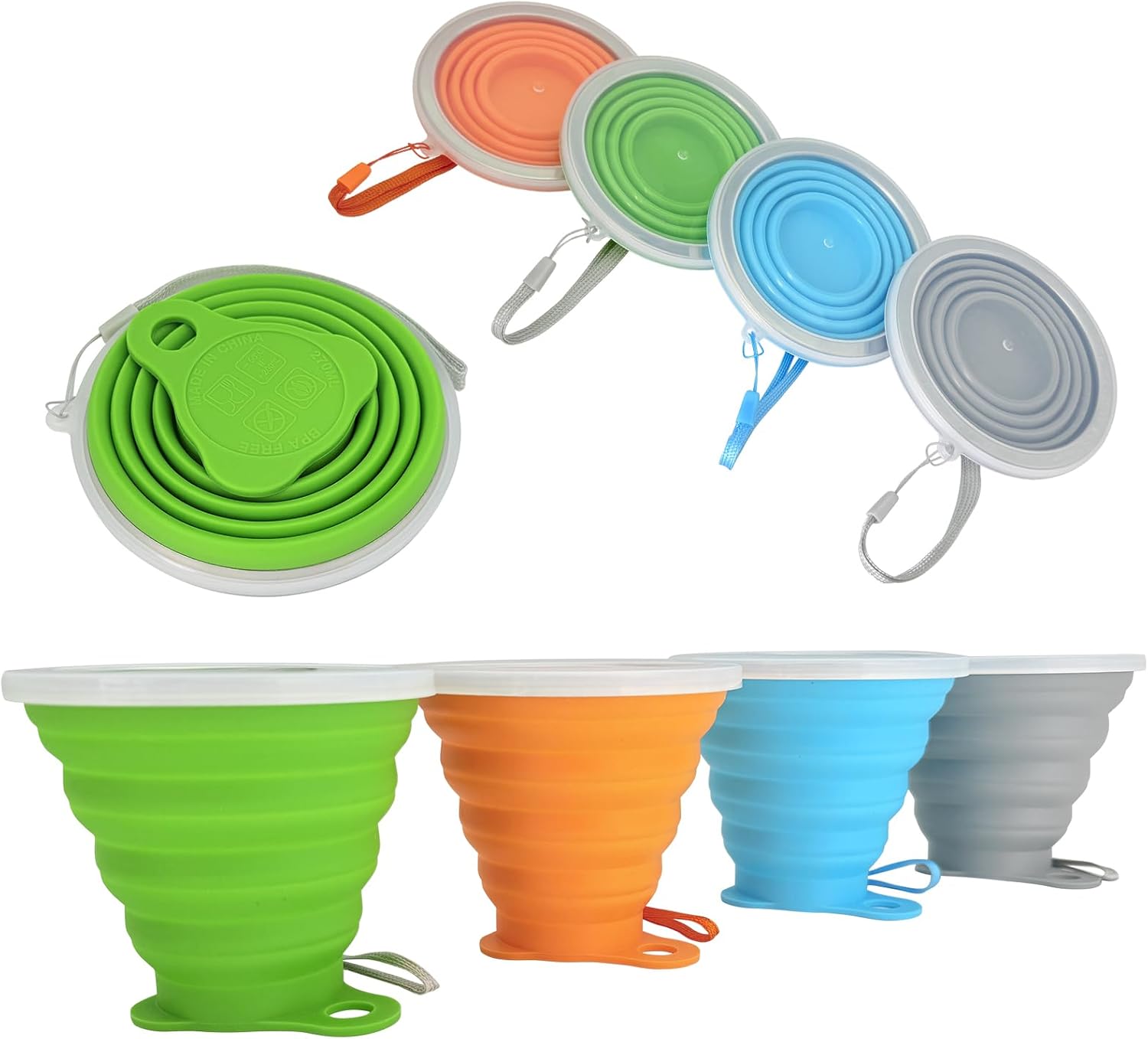 Guyuyii 4 Pack Collapsible Cup - Silicone Drinking Mug with Lids - Collapsible Cups for Traveling, Camping, Backpacking, On The Go, Everyday Use