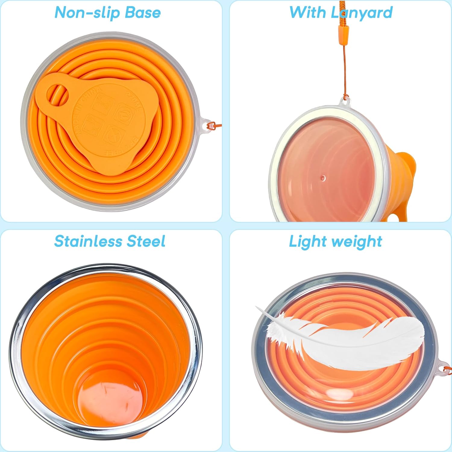 - Introducing the collapsible cup made of food-grade silicone! This mug is designed to be both sturdy and flexible, ensuring it can handle any situation with ease. The solid secure base and stainless steel ring make it not only comfortable to hold, but also easy to carry around on the go.