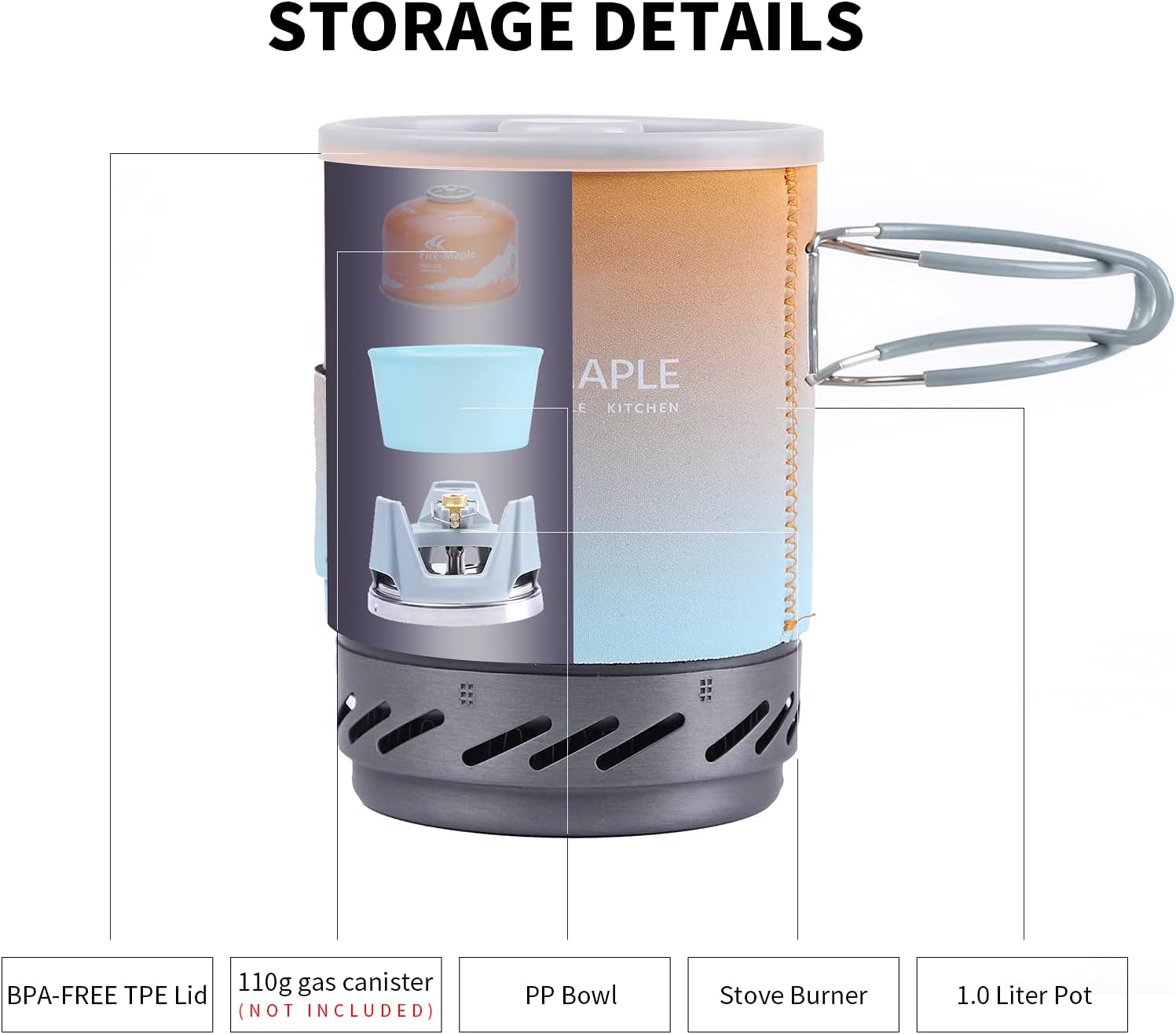 - INTEGRATED AND EASY TO USE SYSTEM - The 1 liter cooking pot and the stove are one integrated unit, the built in piezoelectric ignitor ignites the stove instantly.