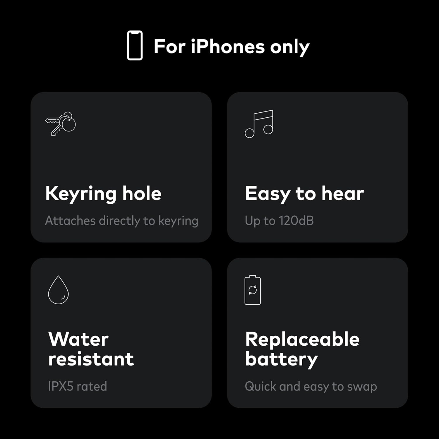 - LOUD AND WATER RESISTANT BLUETOOTH KEY FINDER - Chipolo ONE Spot plays a 120dB loud sound that helps you find your missing keys fast. It's water resistant so you can use it in all conditions without having to worry about damaging your item finder.