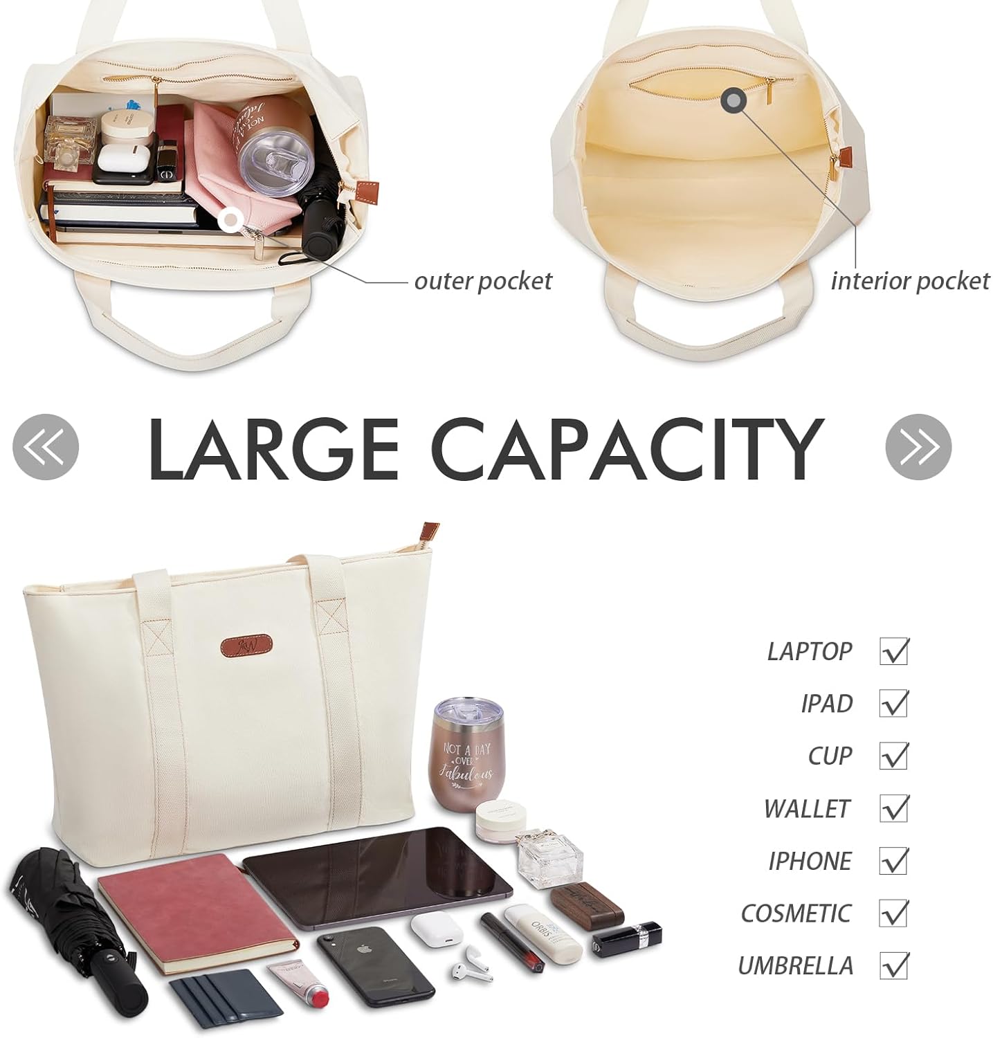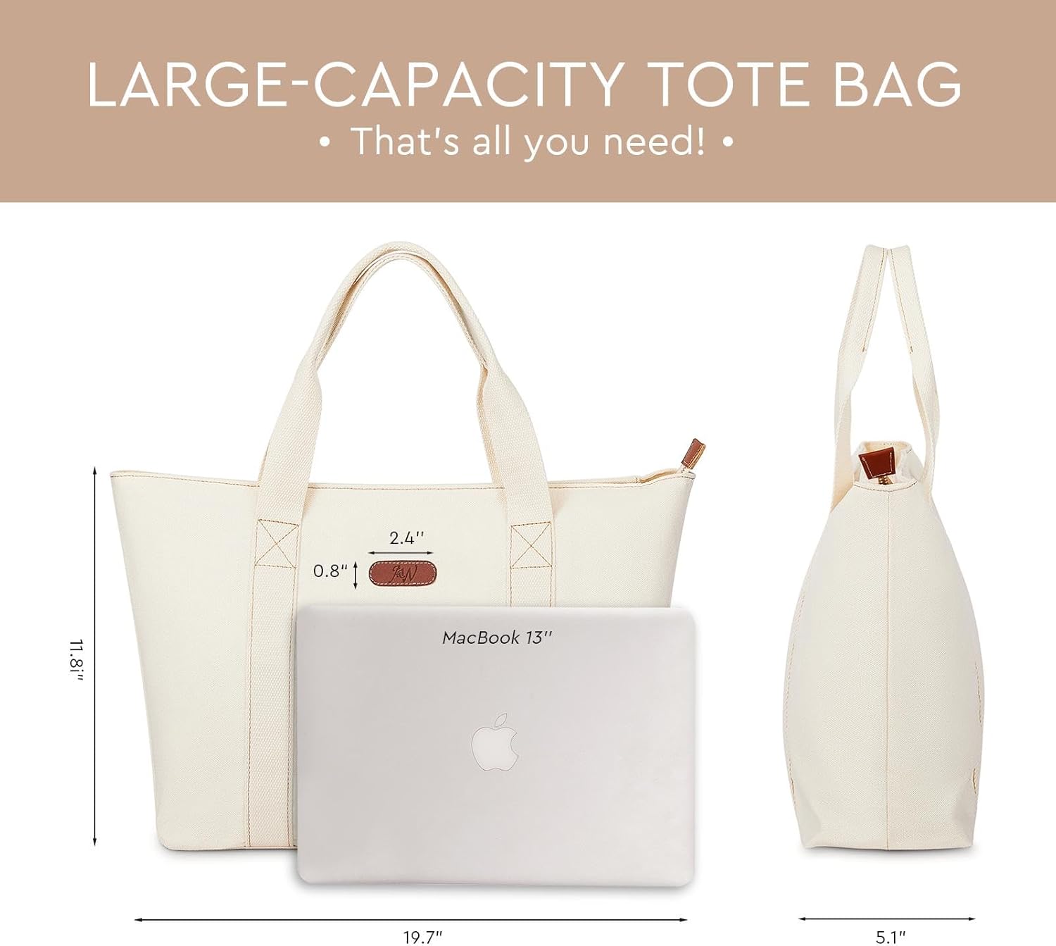 • 【Excellent & Intimate Design】Made of thickened cotton canvas, double stitched to make it tighter and stronger; The roll-up handle design reduces the friction of the hands when lifting heavy objects; Top zipper to prevent things from falling; Built-in small zipper pocket (8*7inches) for easy access to keys, mobile phones and other small items. Classic and simple style is perfect for women of all ages!