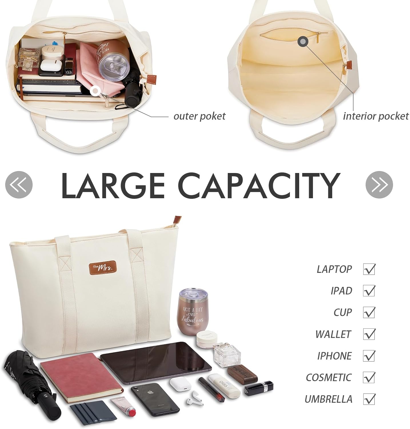 AW BRIDAL Monogram Canvas Tote Bag for Chrismas, Bridal Shower, Retirement, Birthday Gifts for Women Mom Wife Sister Friends