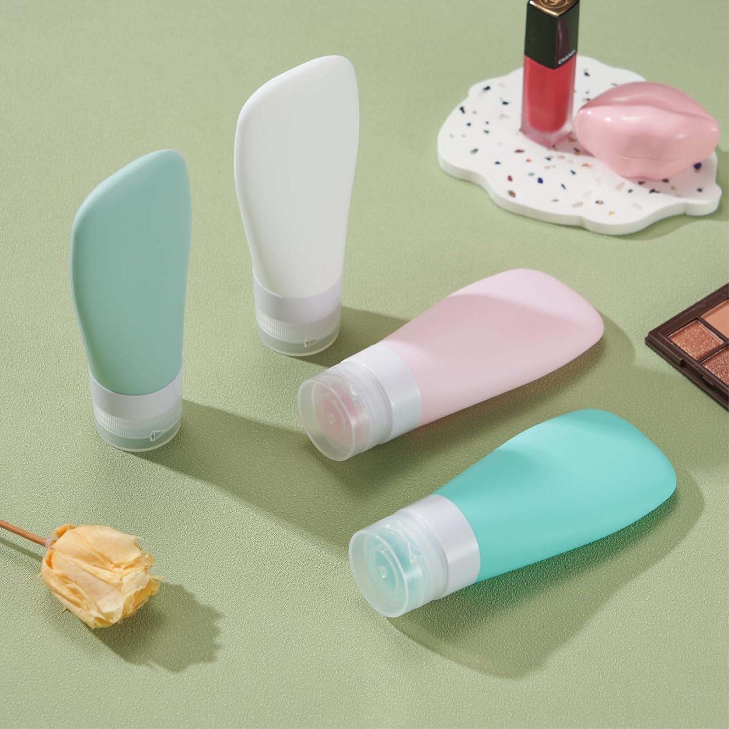 - Leakage Proof Travel Bottles: with three layers leak proof design it prevents liquid leakage or spillage, offers protection to your luggage and cloths without making a mess. Soft silicone tubes are easy to squeeze to get down to the very last drop out.