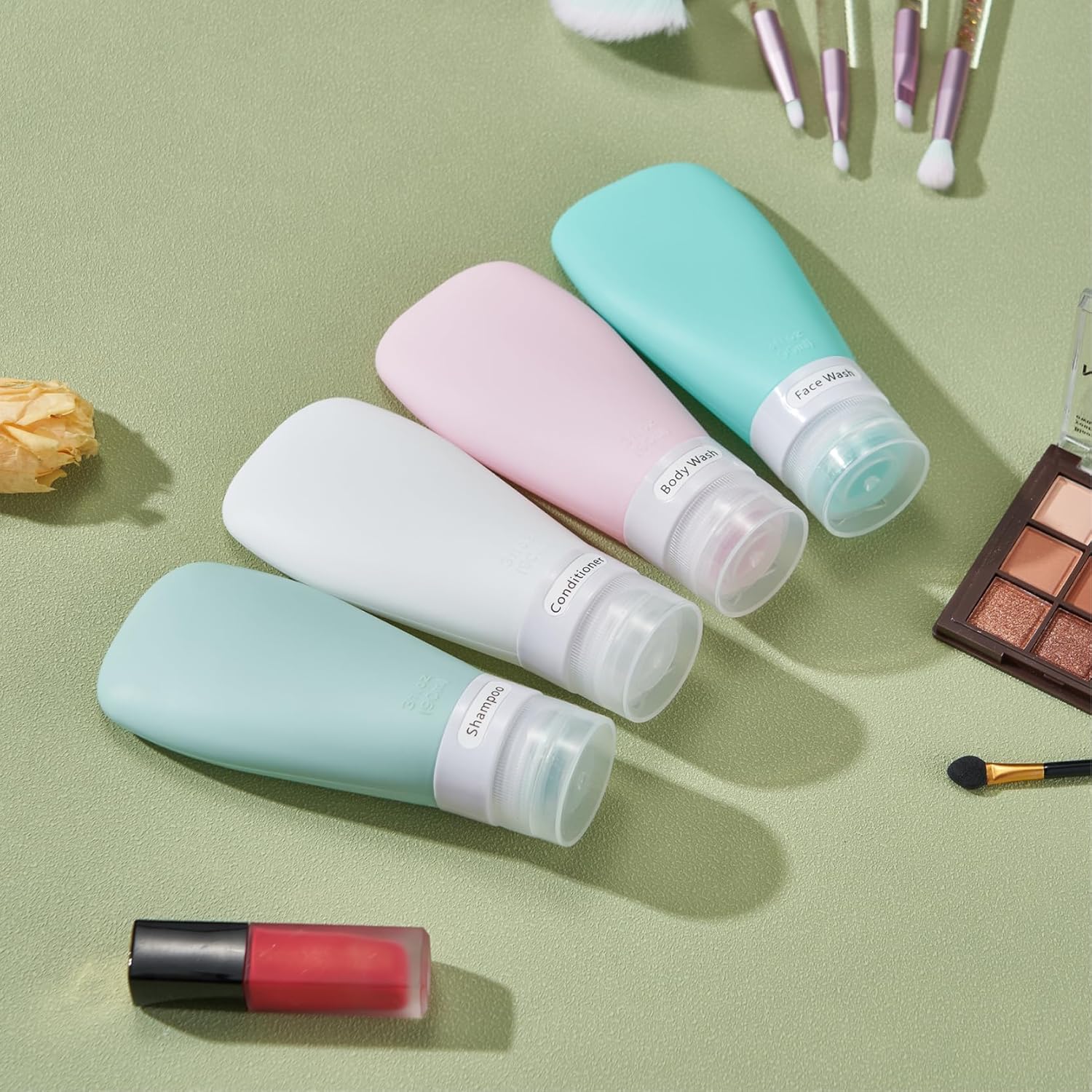 - TSA Carry on Approved: 4 pack 3 ounce silicone travel bottles, perfect for shampoo, conditioner, body wash, lotion, hand sanitizer, shower gel. Packed with a high quality zippered clear toiletry bag, saving space, easy to carry with for travels or gym workout.