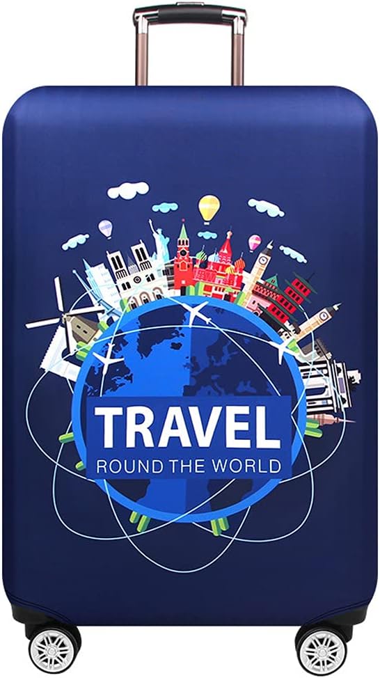 MosaiRudo Thicker Luggage Cover Elastic Suitcase Cover Protector Fits 18-32 Inch Suitcase Travel Accessories (Travel, L)